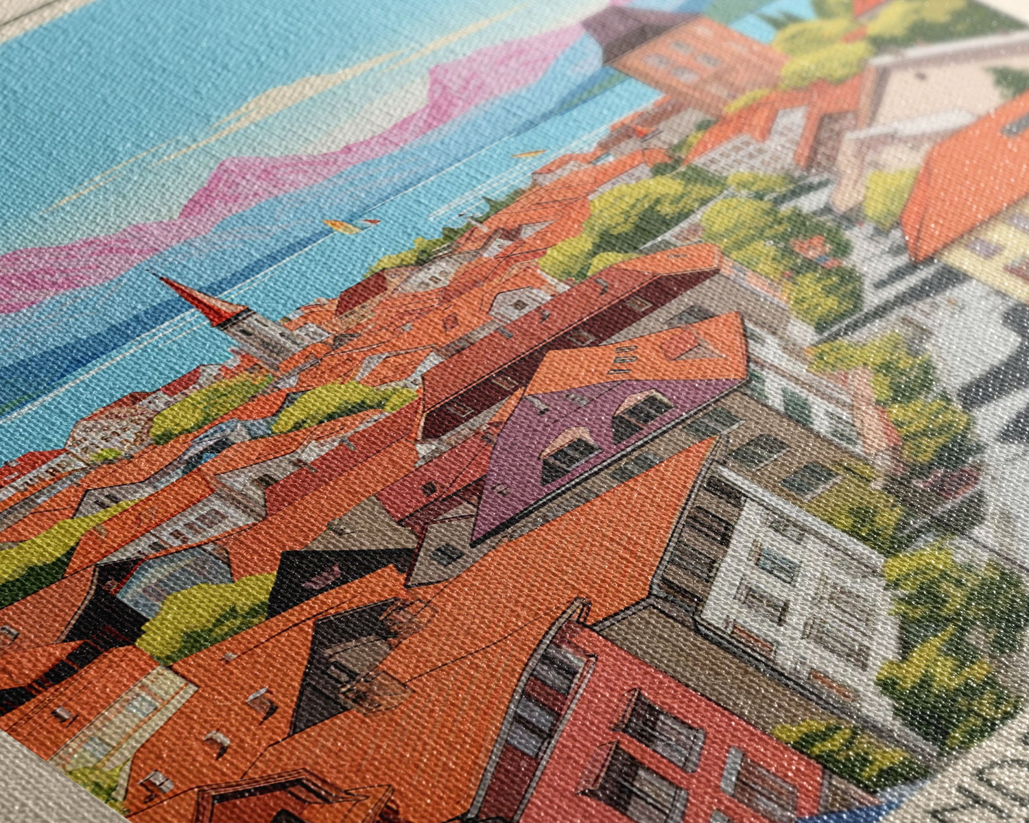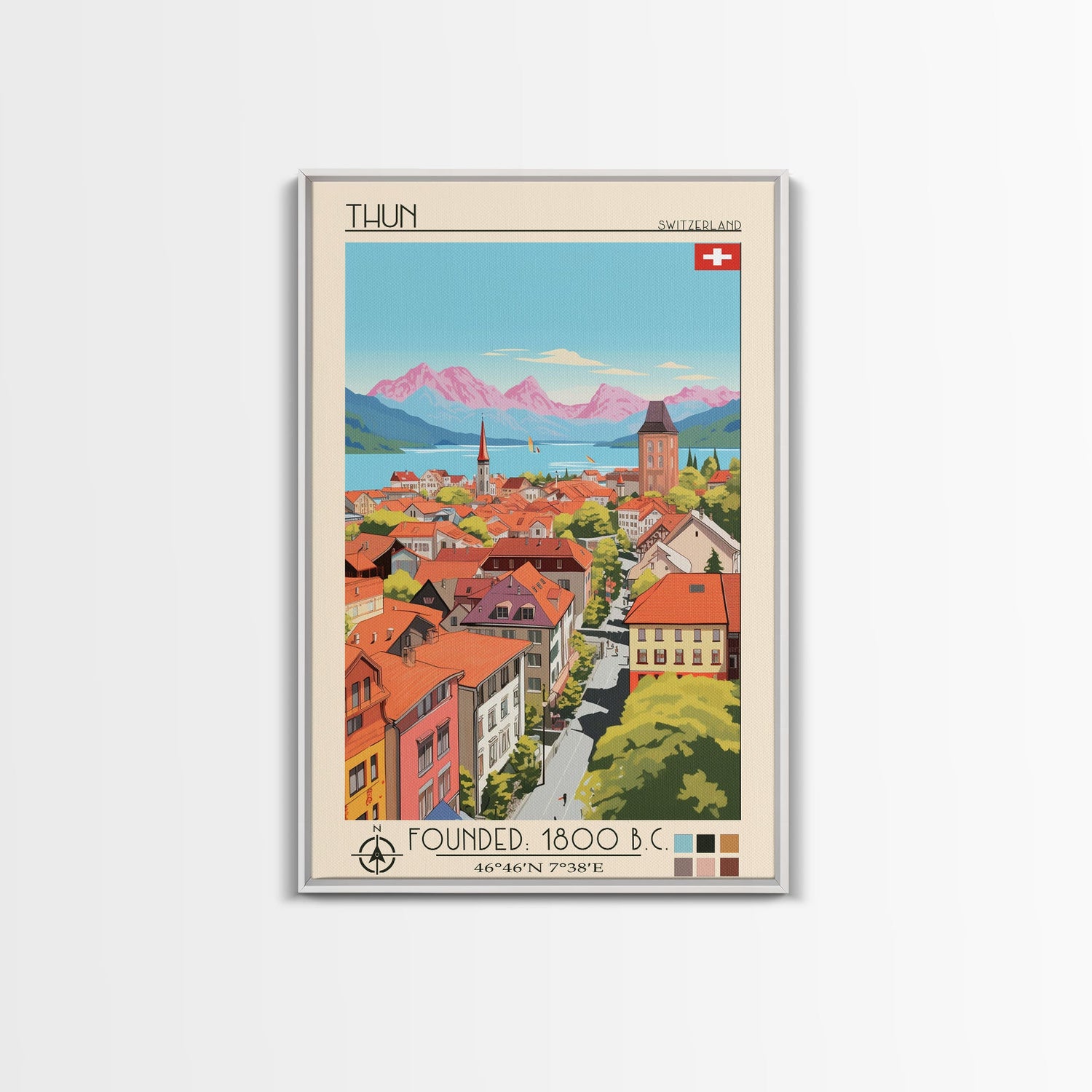 Thun Switzerland Travel Poster Framed Canvas Print, Midcentury Modern Art, Pop Art Wall Decor, Living Room Art, Scenic Wall Art