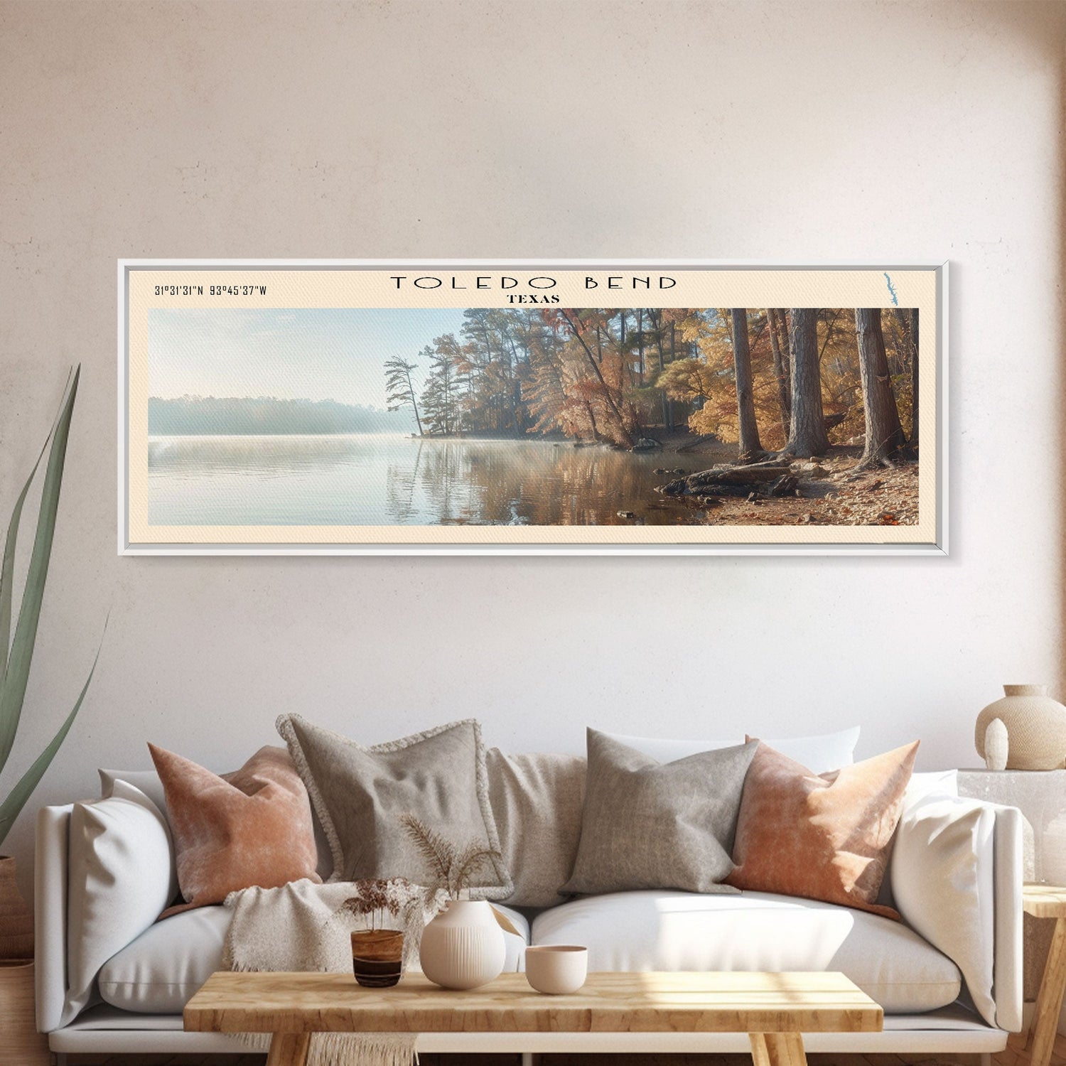 Toledo Bend Panoramic Wall Art, Framed Canvas Print, Lake House Decor, Travel Poster, Serene Landscape, Living Room Art