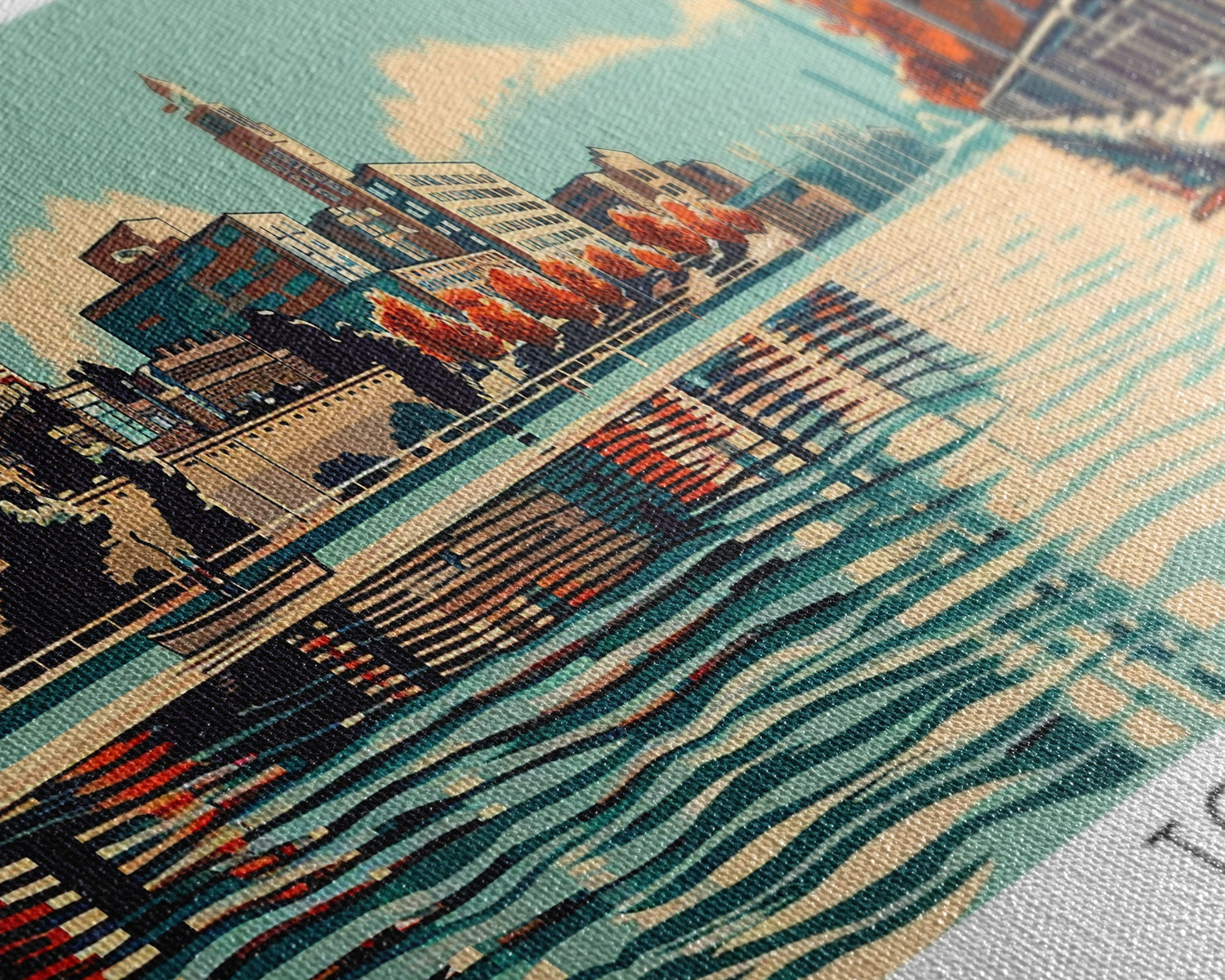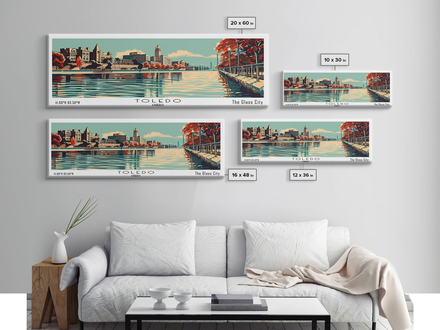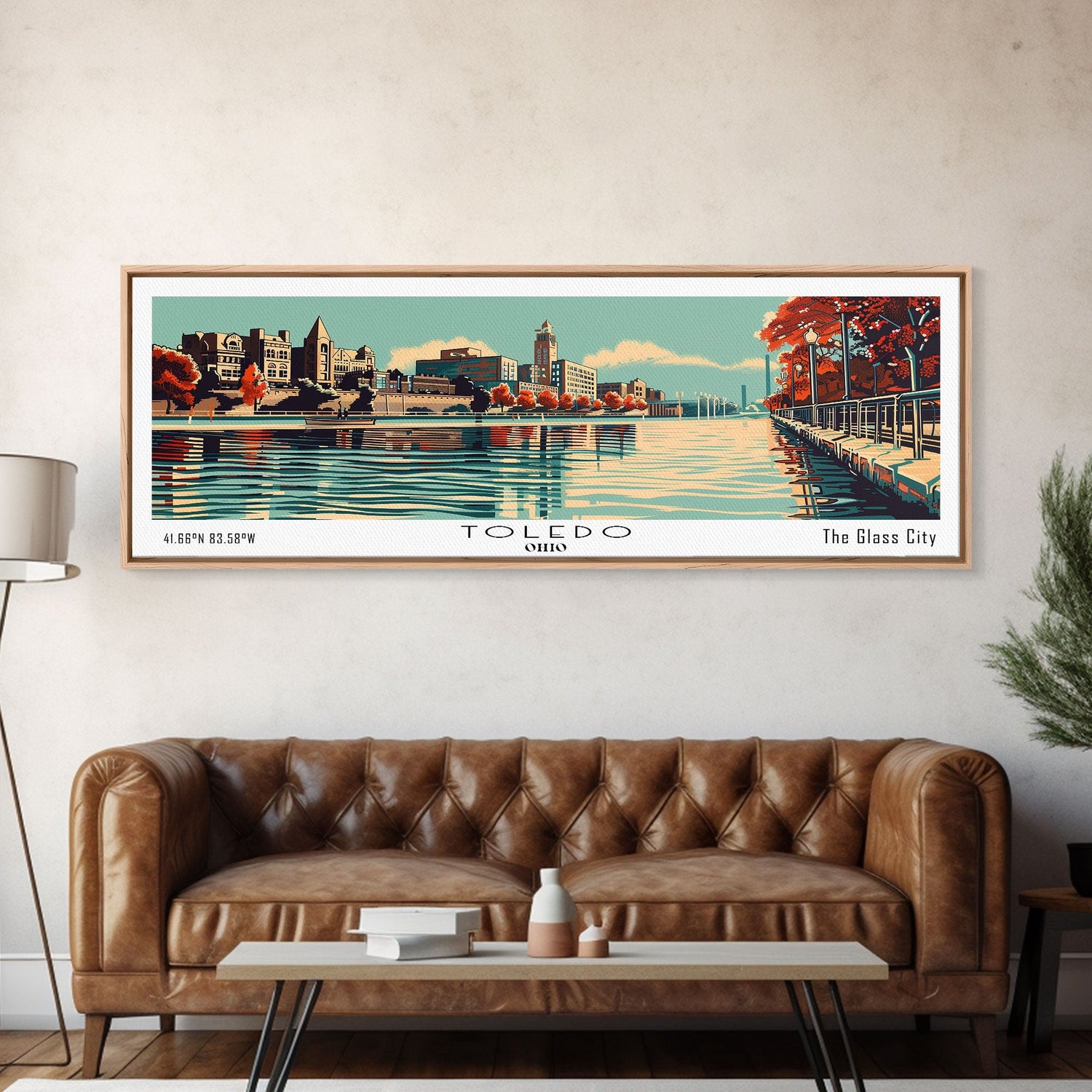 Toledo Ohio Panoramic Wall Art, Mid Century Modern Framed Canvas Print, Retro Pop Art Cityscape, Travel Poster, Living Room Decor