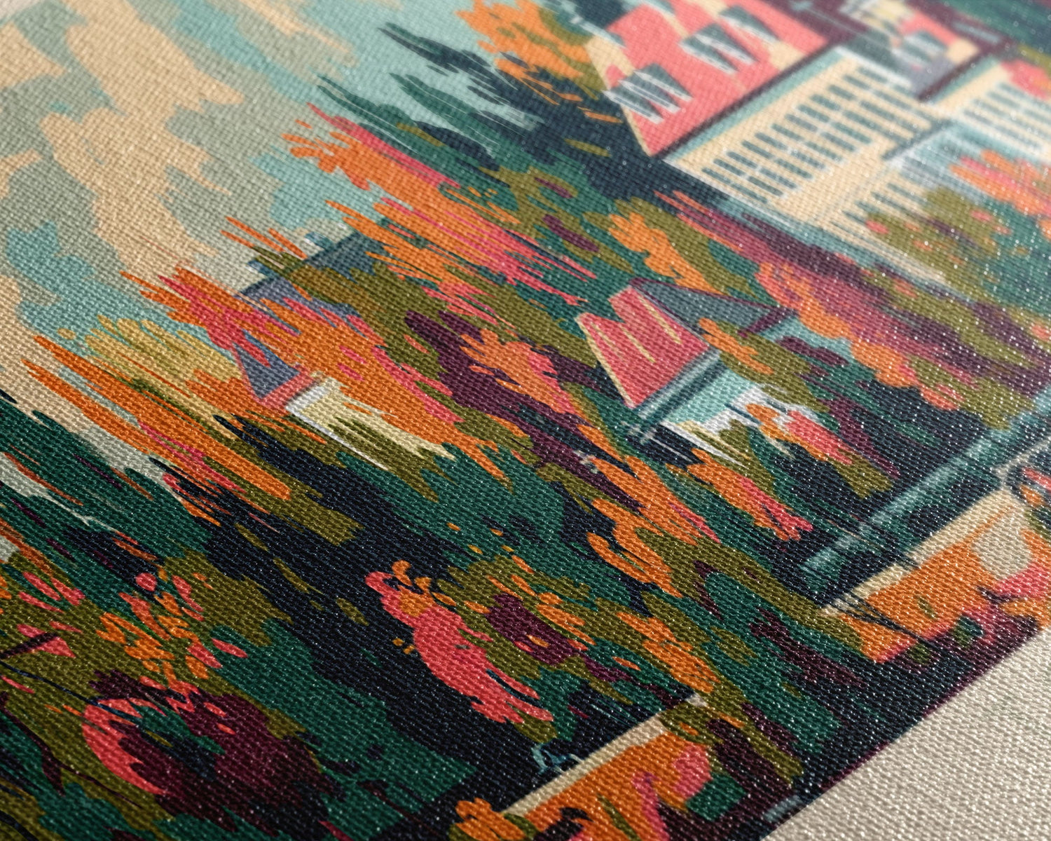 Most of our canvases are made in the USA, with the exception of canvases ordered with the light oak unstained frames, and any large canvases (24x48, 30x60, 16x48 and 20x60) ordered WITH a frame. These are temporarily made in and shipped from Europe, while we try to find a more consistent supplier in the USA.