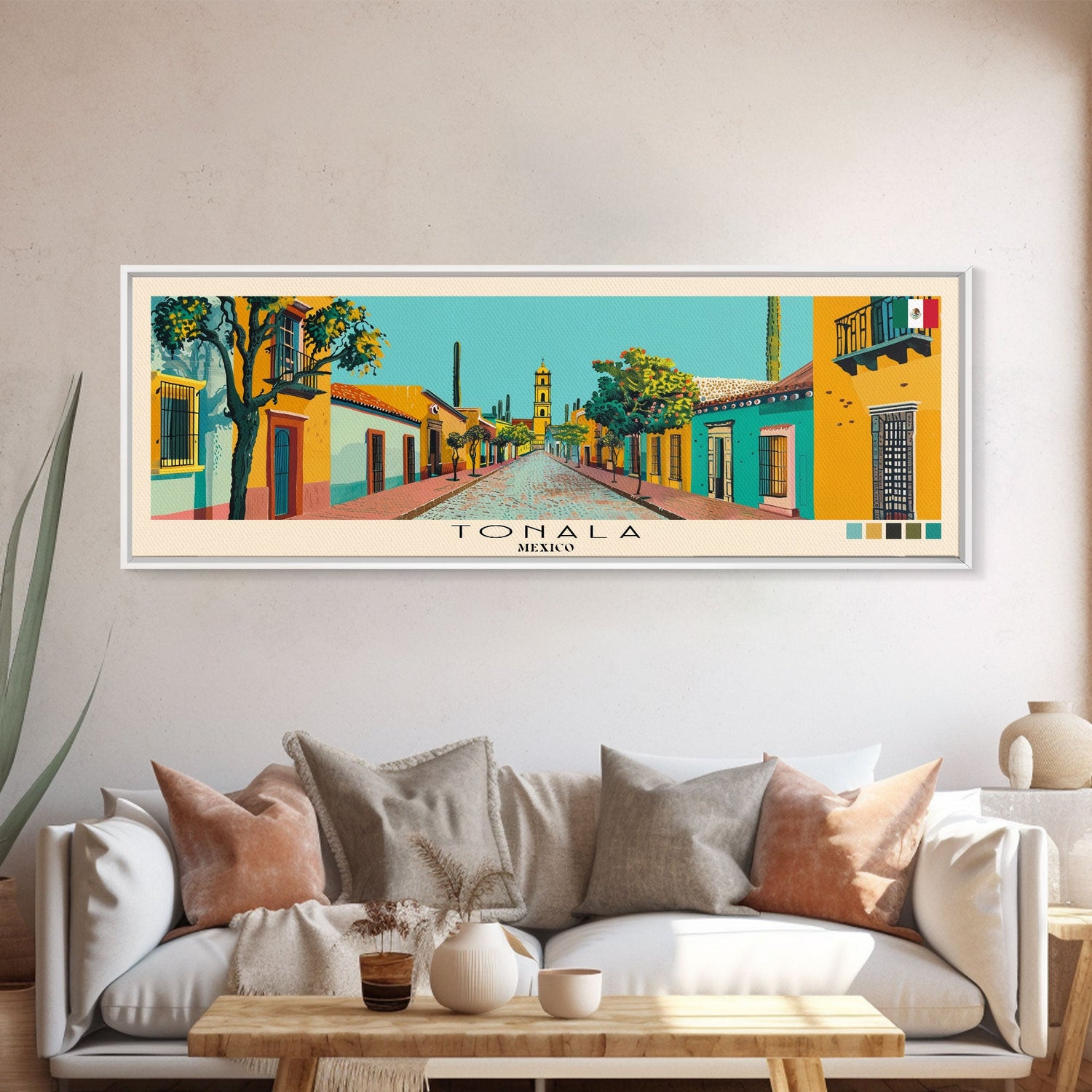 Tonala, Mexico Panoramic Canvas Print, Tonala, Mexico Painting, Mexico Art, Tonala Travel Poster, Travel Art, Guest Room Painting