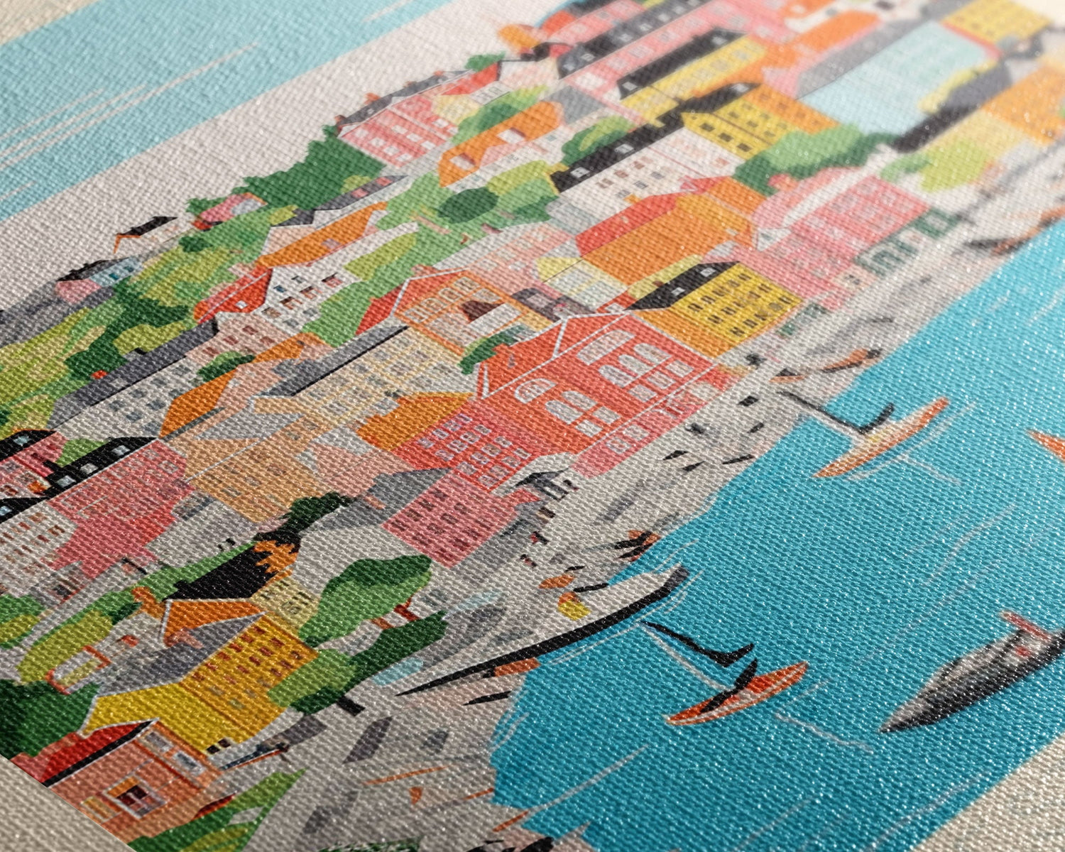 Tønsberg Norway Travel Poster Framed Canvas Print, Midcentury Modern Art, Pop Art Wall Decor, Living Room Art, Vacation Gift