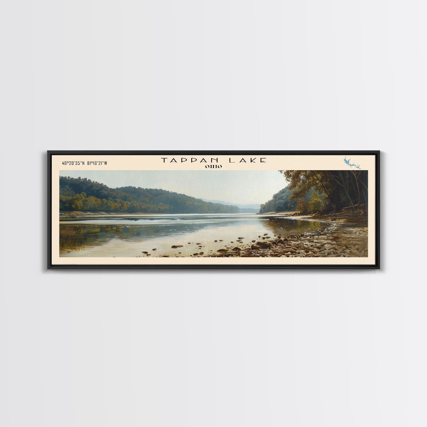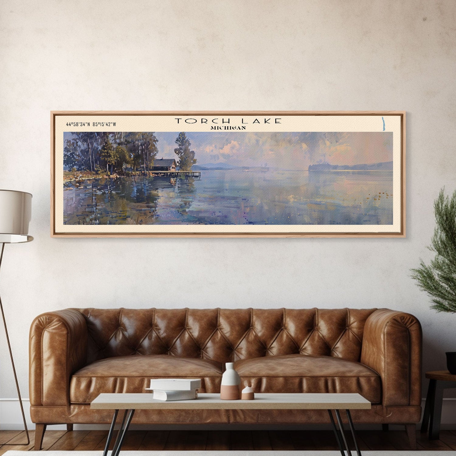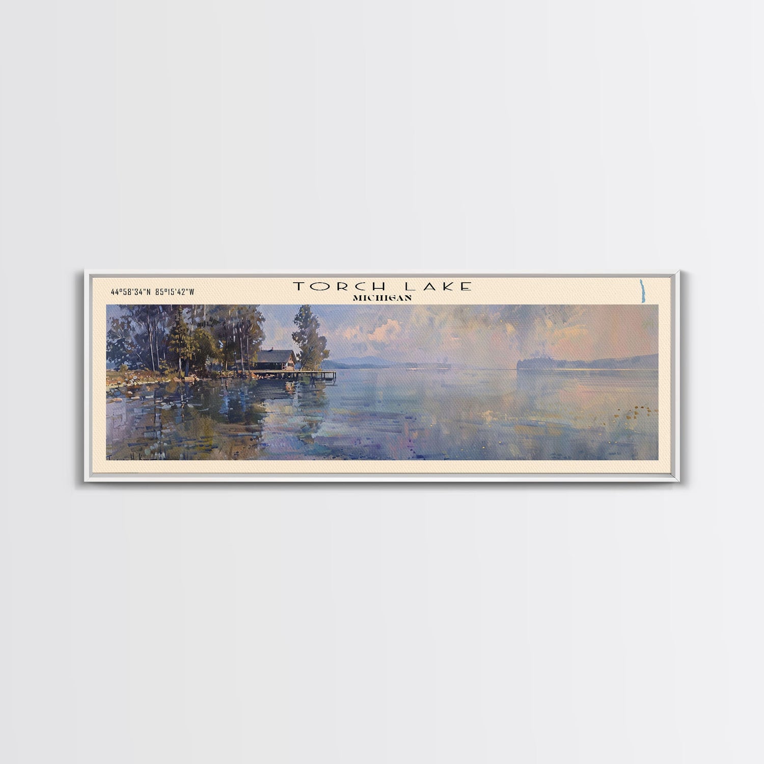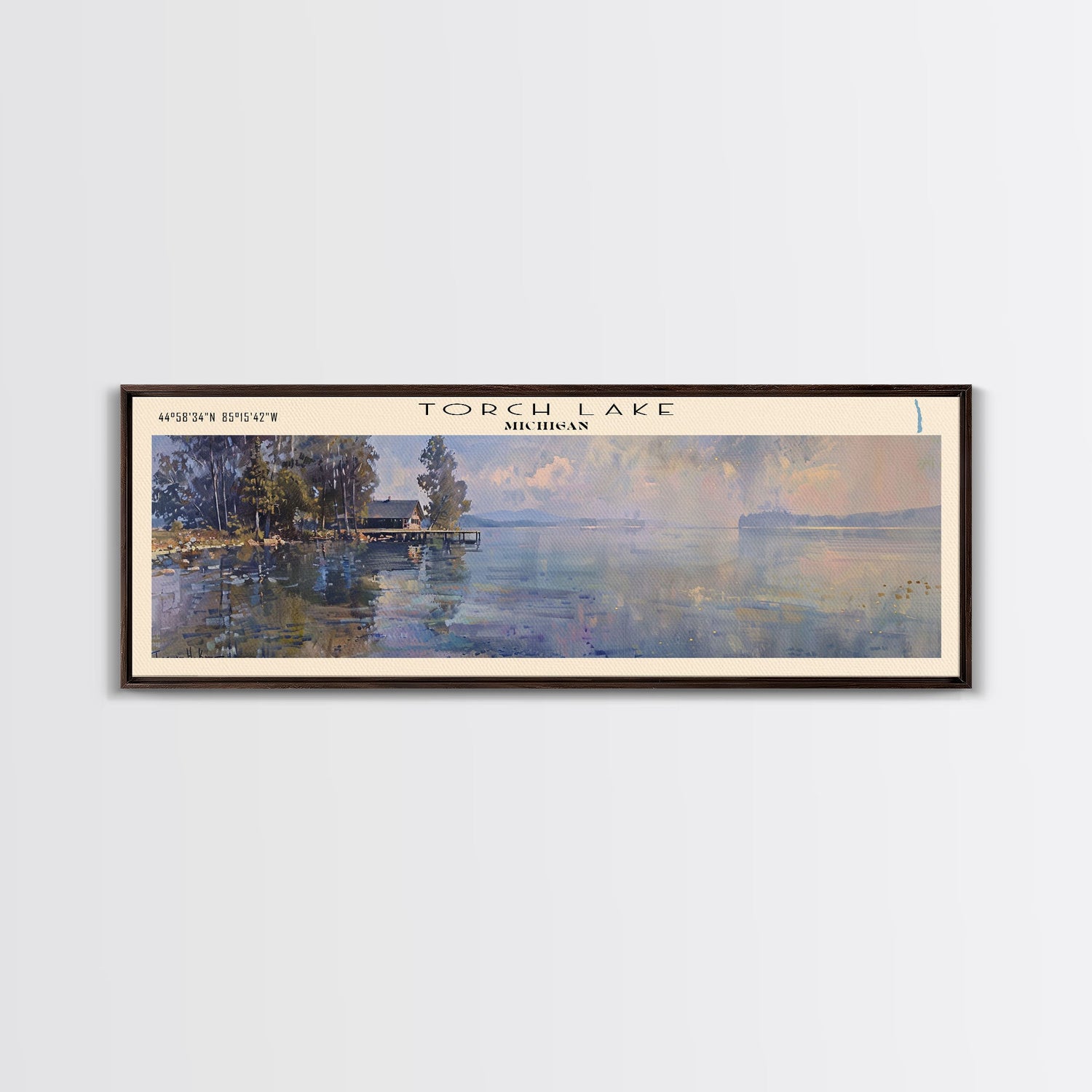 Torch Lake Panoramic Wall Art, Framed Canvas Print, Lake House Decor, Travel Poster, Serene Landscape, Home Decor
