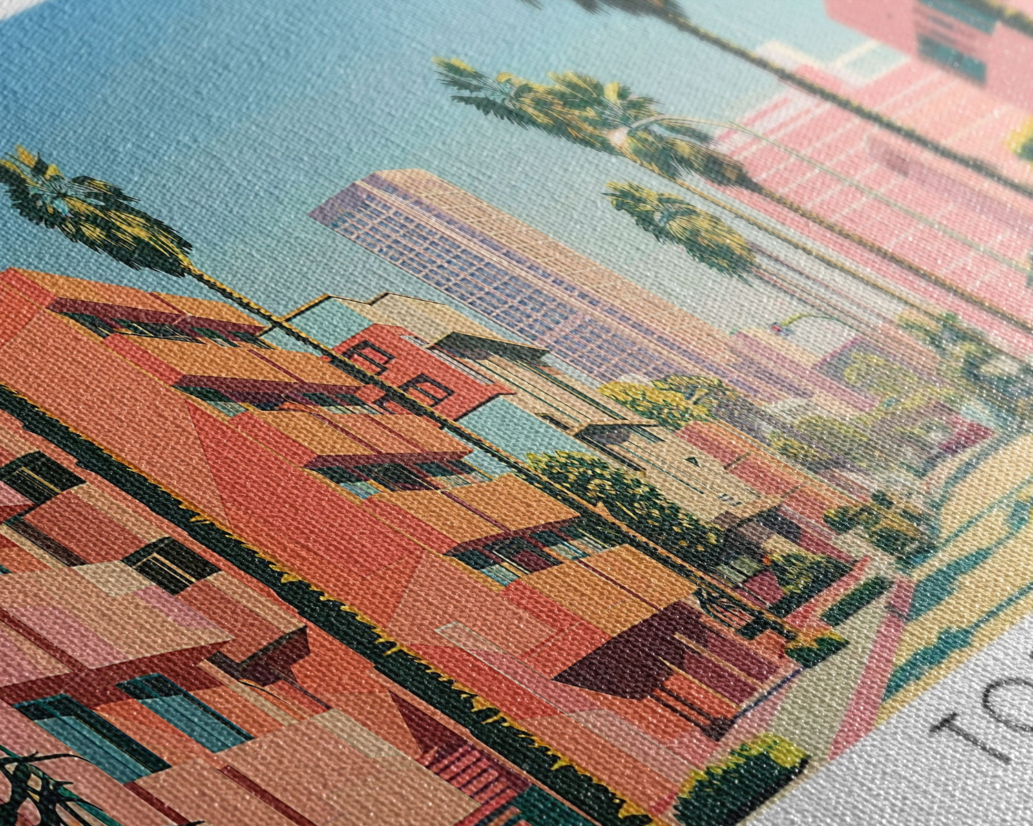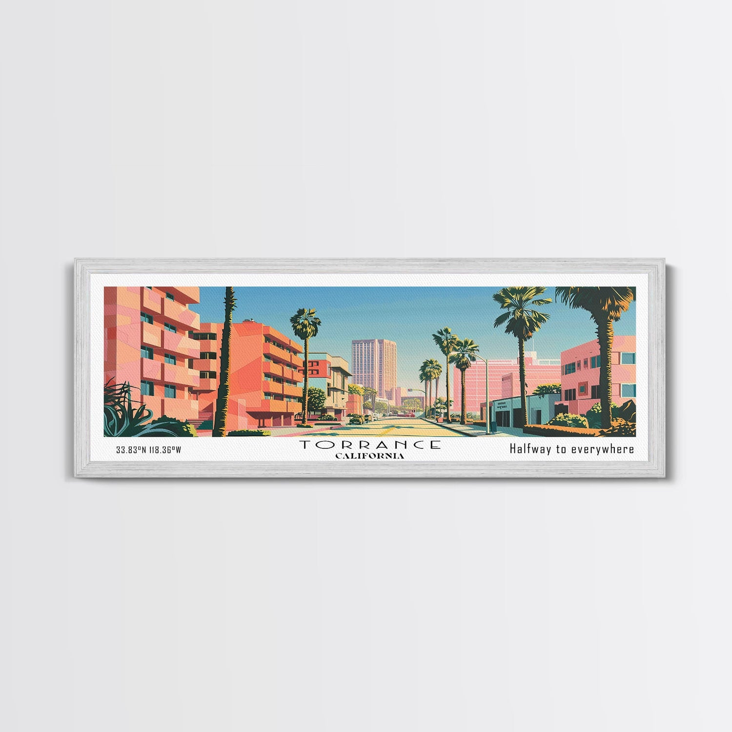 Torrance California Panoramic Wall Art, Mid Century Modern Framed Canvas Print, Retro Pop Art Travel Poster, Living Room and Office Decor
