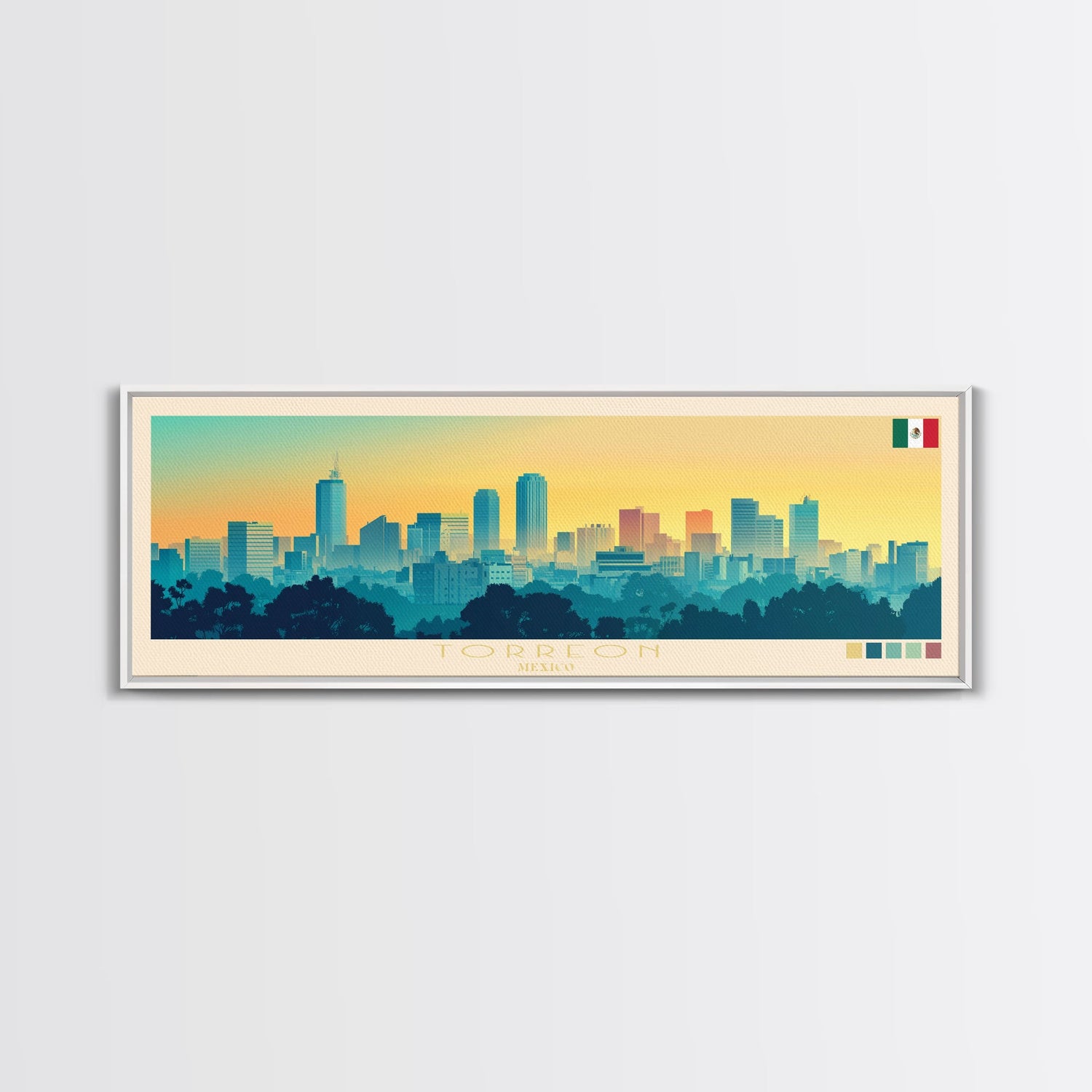 Torreon, Mexico Travel Poster Panoramic Canvas Print, Torreon, Mexico Painting, Mexico Art, Torreon Travel Art, Guest Room Painting