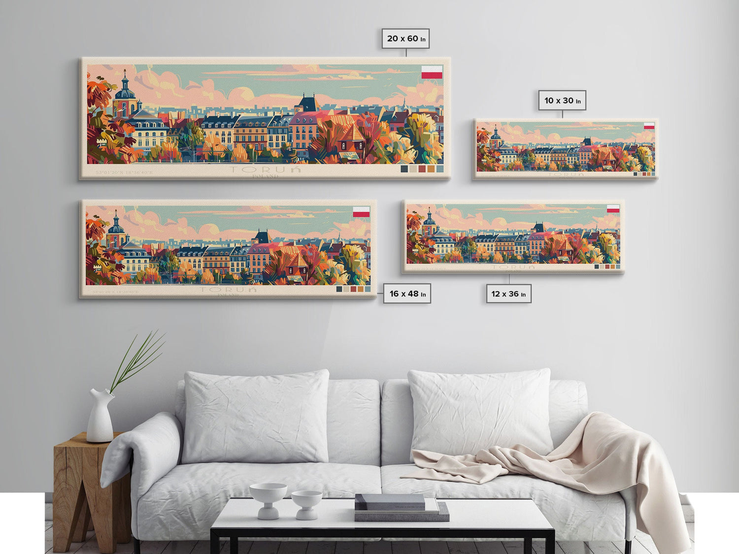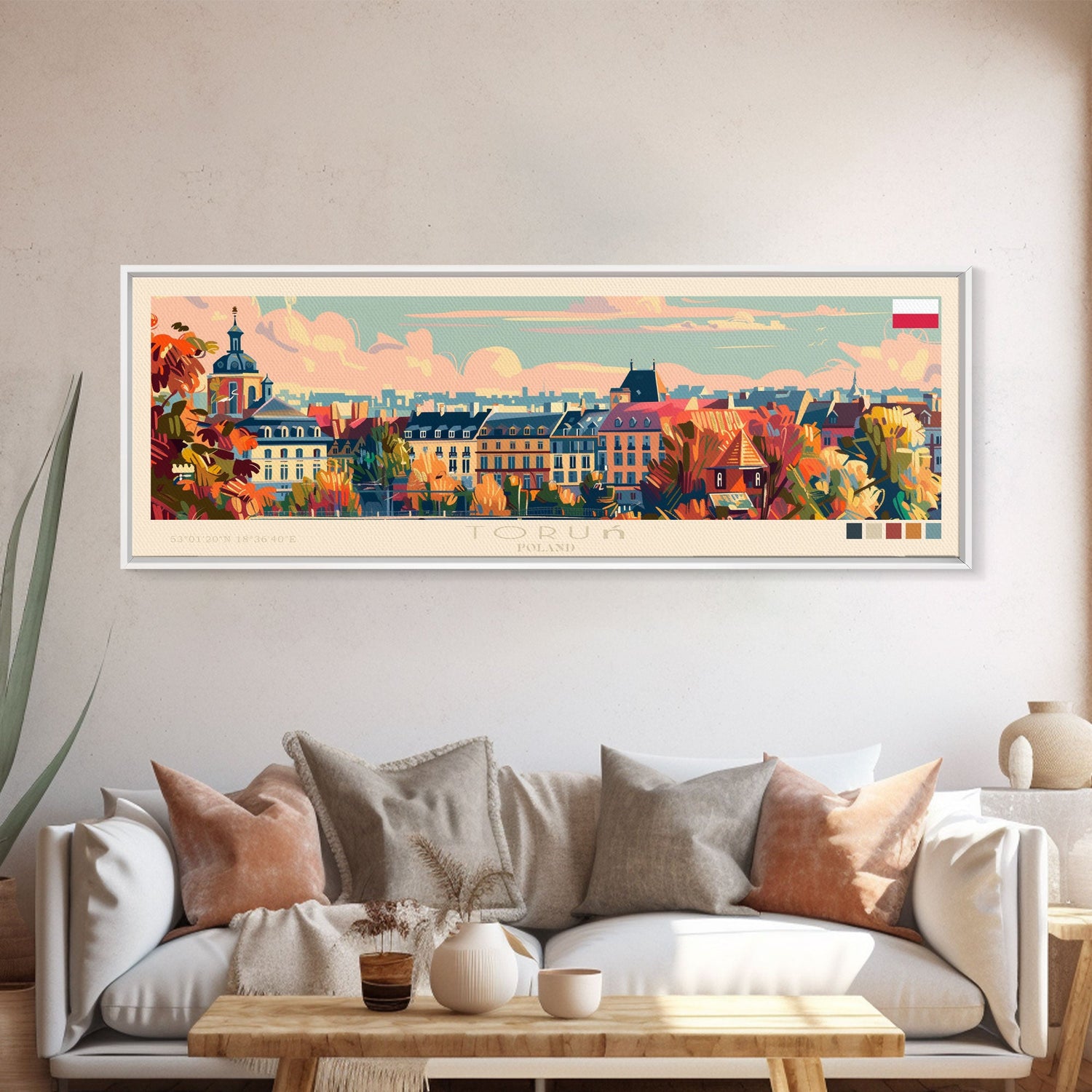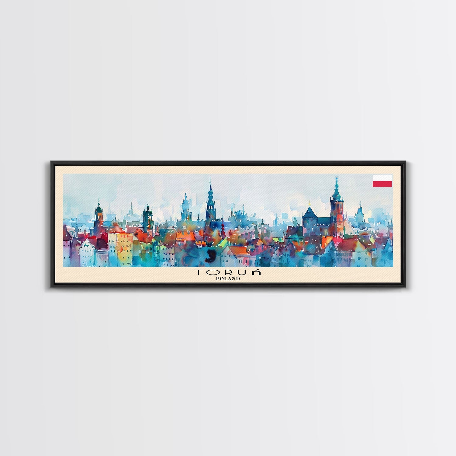 Torun Poland Travel Art, City Art, Framed Canvas Print or Metal Wall Art, Europe Travel Poster, Panoramic Wall Art, Extra Wide Wall Art