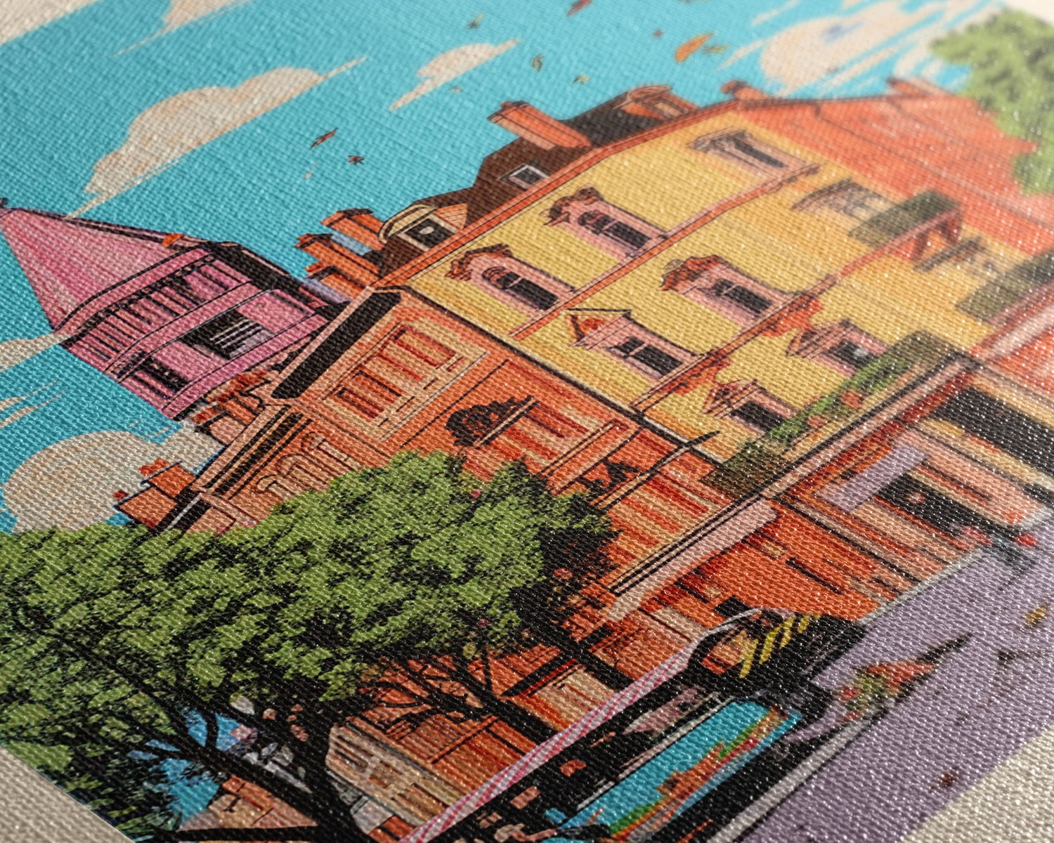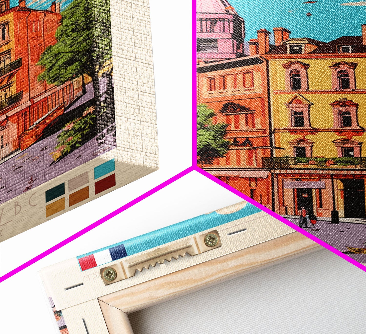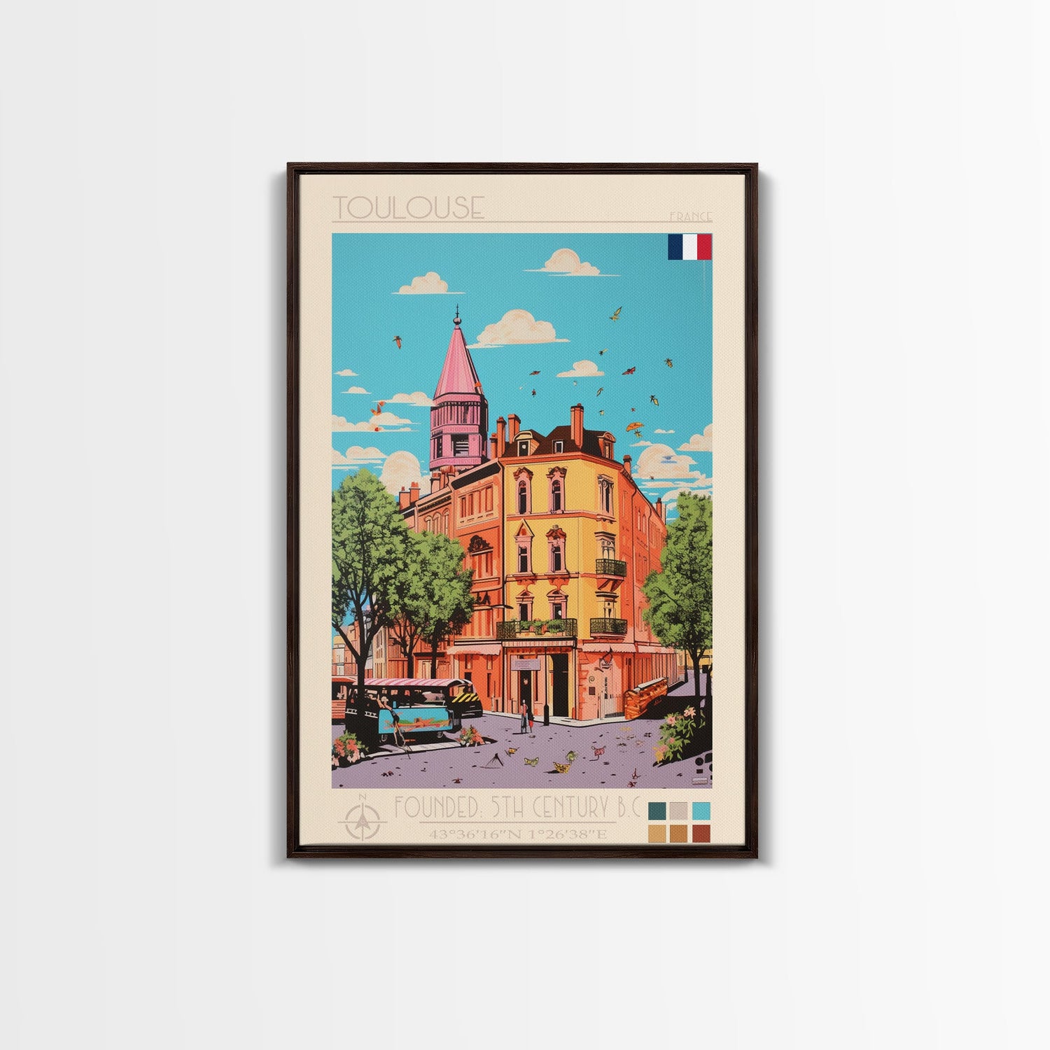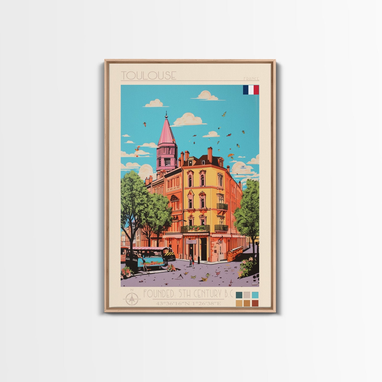 Toulouse France Travel Poster Framed Canvas Print, Midcentury Modern Art, Pop Art Wall Decor, Living Room Art, Scenic Wall Art