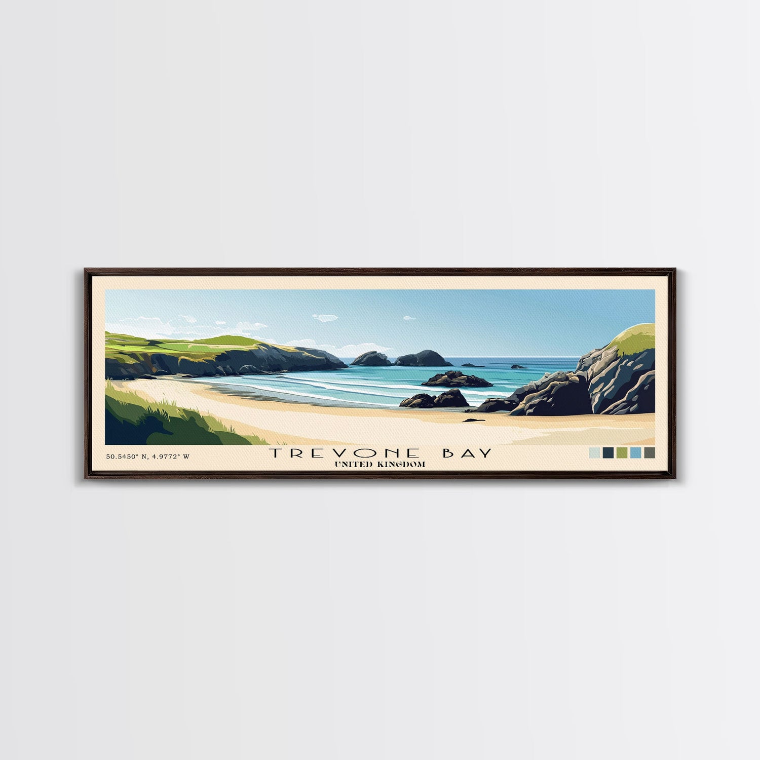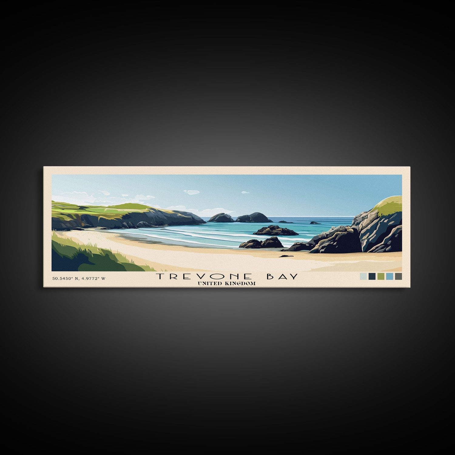Trevone Bay, United Kingdom Panoramic Print, Vacation Gift, United Kingdom Wall Art, Beach Painting, Beach Decor, Beach Or Lakehouse Art