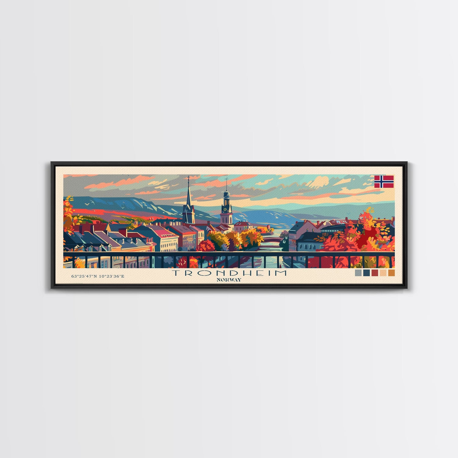 Trondheim Norway Travel Print Wall Art, Panoramic City Art, Travel Art, Wall Decor, Vacation Gift, Framed Canvas Print Or Metal Art