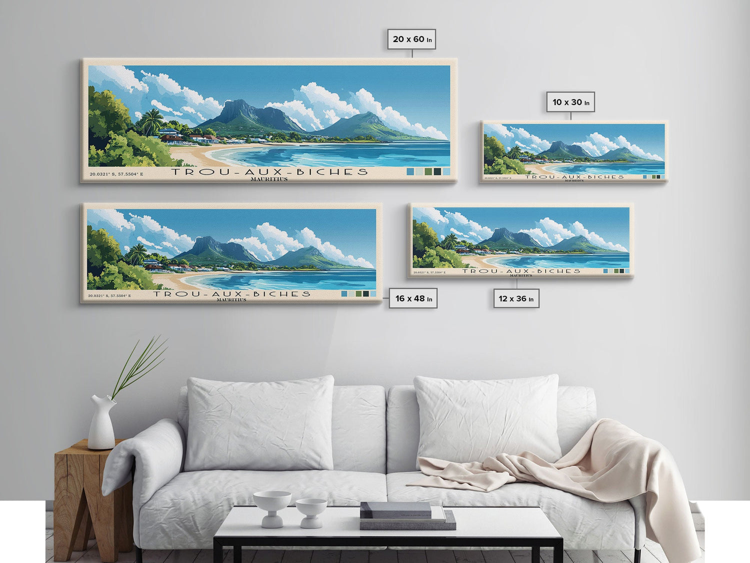 Trou-aux-Biches, Mauritius Panoramic Beach Print, Vacation Gift, Mauritius Wall Art, Beach Painting, Beach Decor, Beach Painting