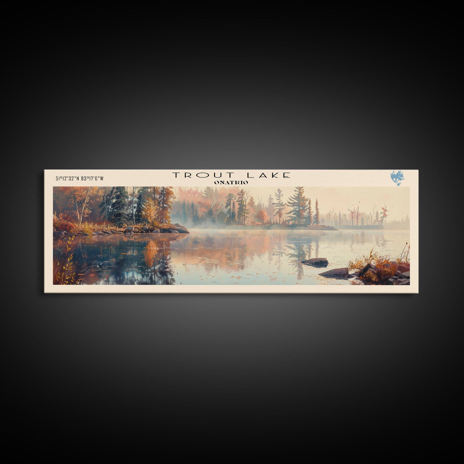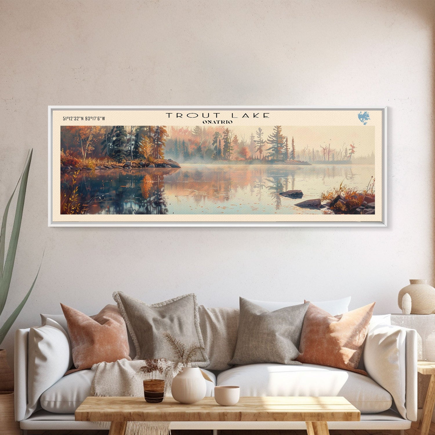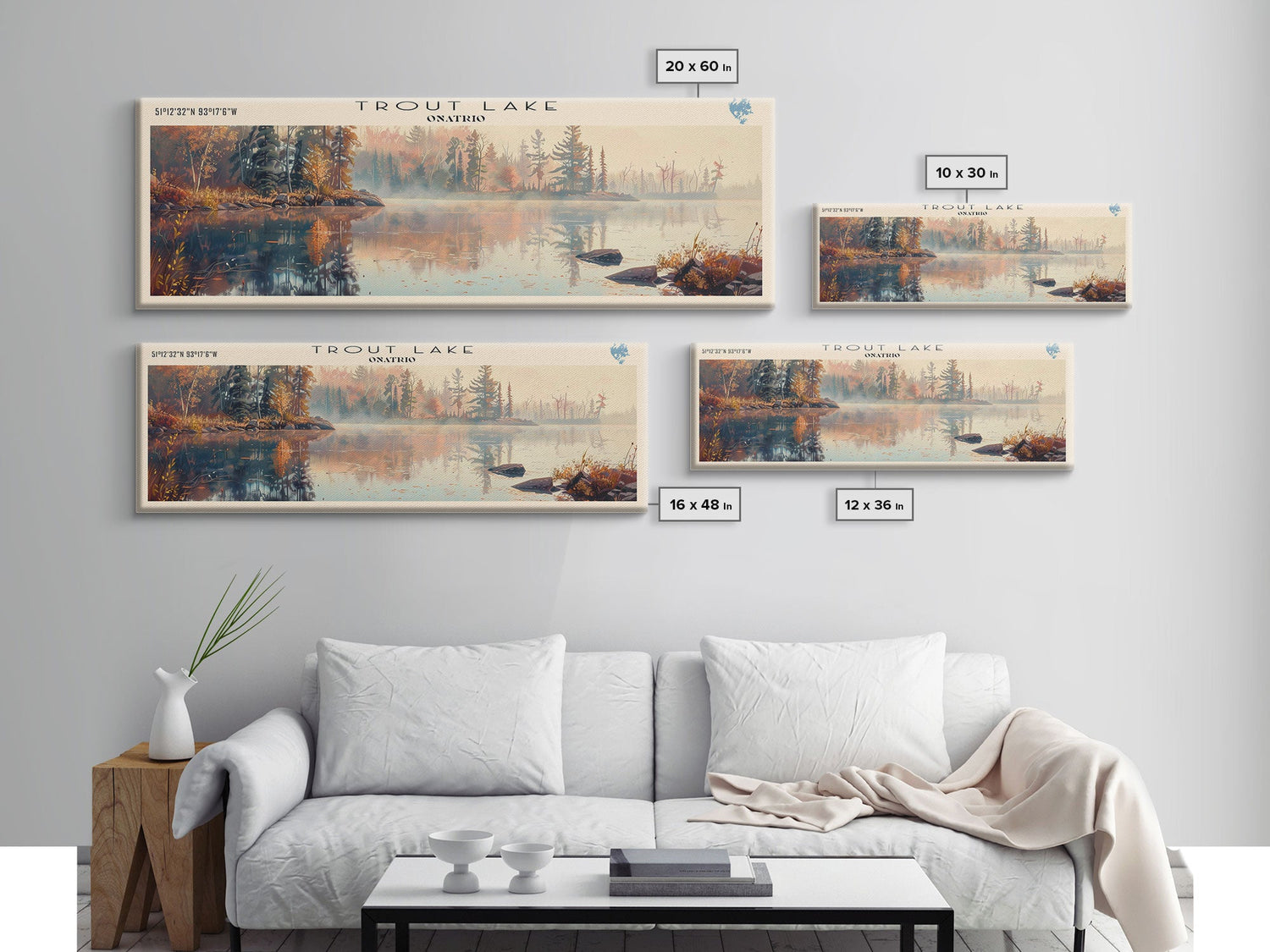 Trout Lake Canada Ontario Panoramic Wall Art, Framed Canvas Print, Lake House Decor, Travel Poster, Serene Landscape, Living Room Art