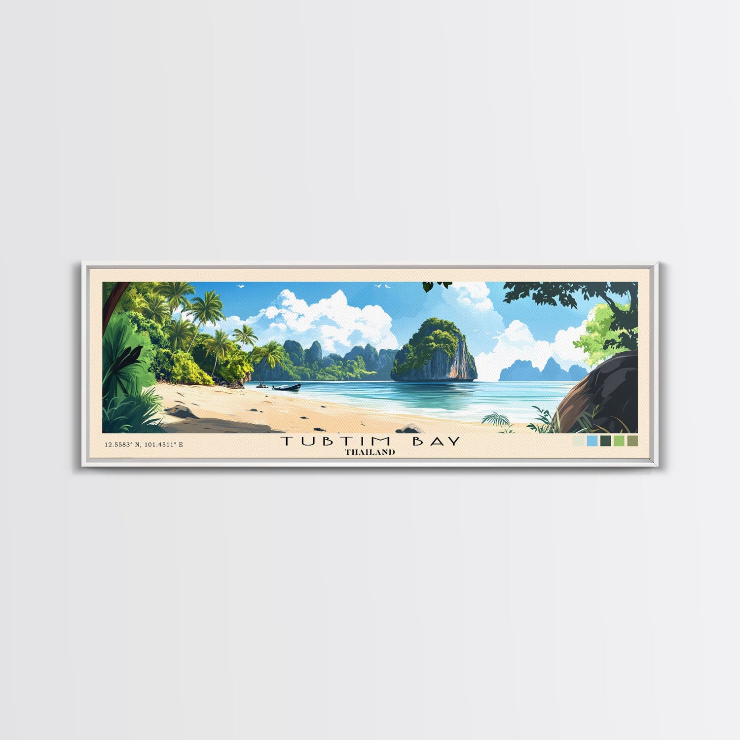Tubtim Bay, Thailand Panoramic Beach Print, Vacation Gift, Thailand Wall Art, Beach Painting, Beach Decor, Beach Painting