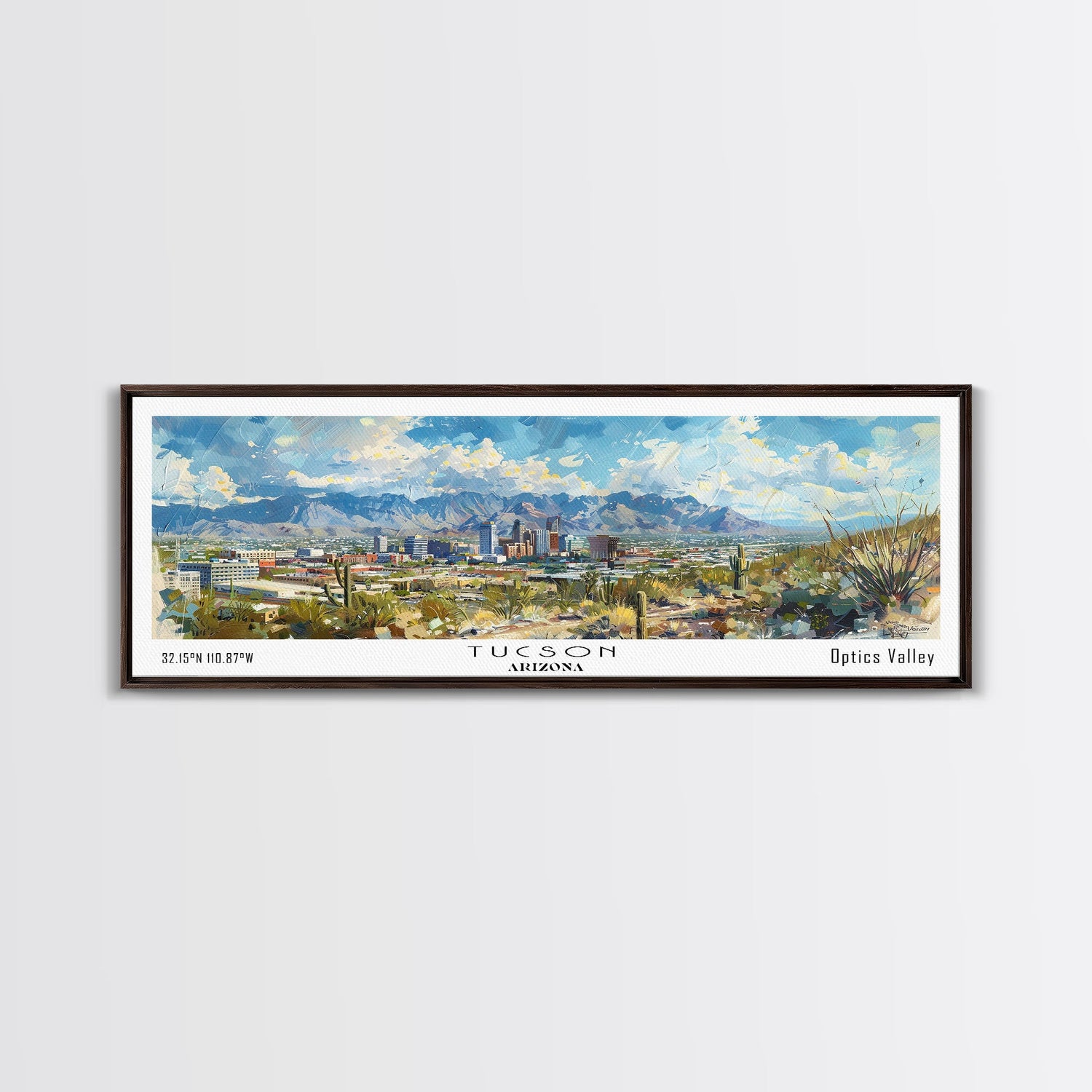 Tucson Arizona Panoramic Painting, Framed Canvas Print, Retro Travel Poster, Artistic Wall Art, Unique Living Room Decor, Office Gift Idea