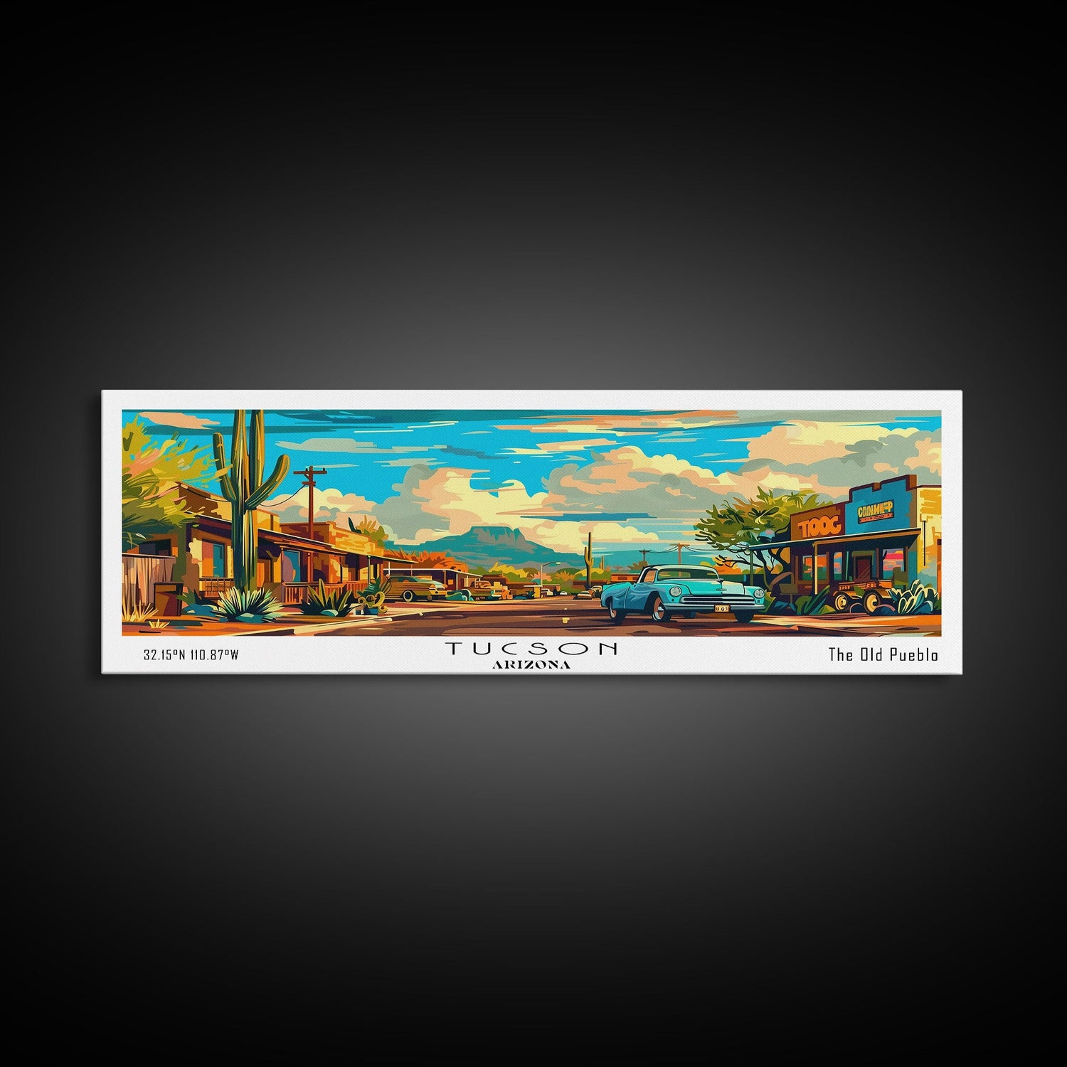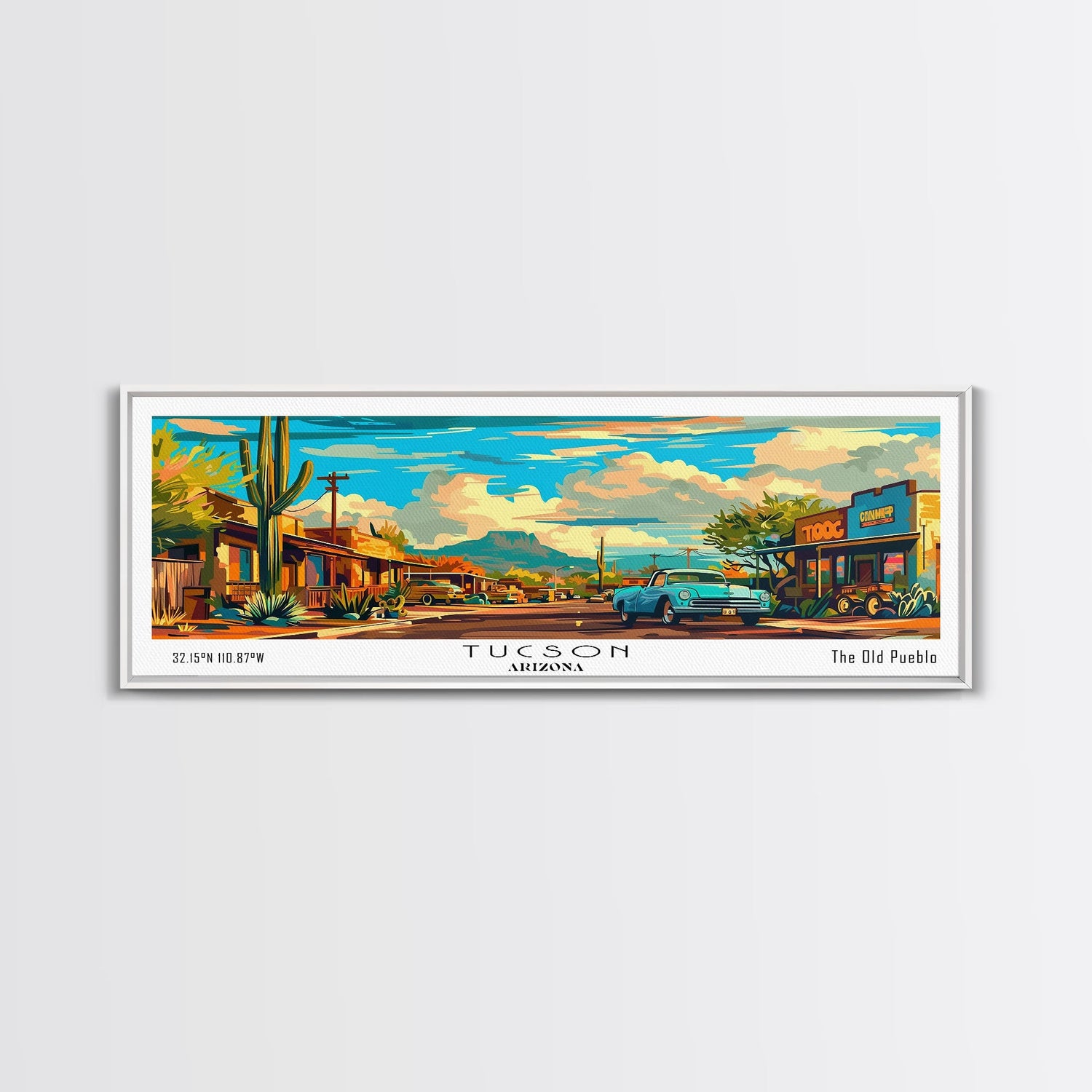 Tucson Arizona Panoramic Wall Art, Mid Century Modern Framed Canvas Print, Retro Pop Art Travel Poster, Office Wall Art, Living Room Decor