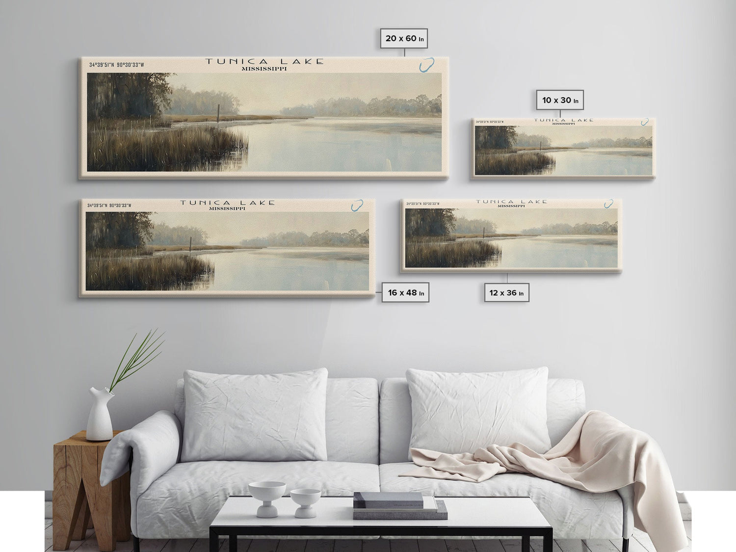 Tunica Lake Mississippi Panoramic Wall Art, Framed Canvas Print, Lake House Decor, Travel Poster, Beautiful Lake Scene, Home Art - 10x30 Inches / Tenkiller-Ferry-Lake-Oklahoma está agotado y se enviará tan pronto como vuelva a estar disponible.