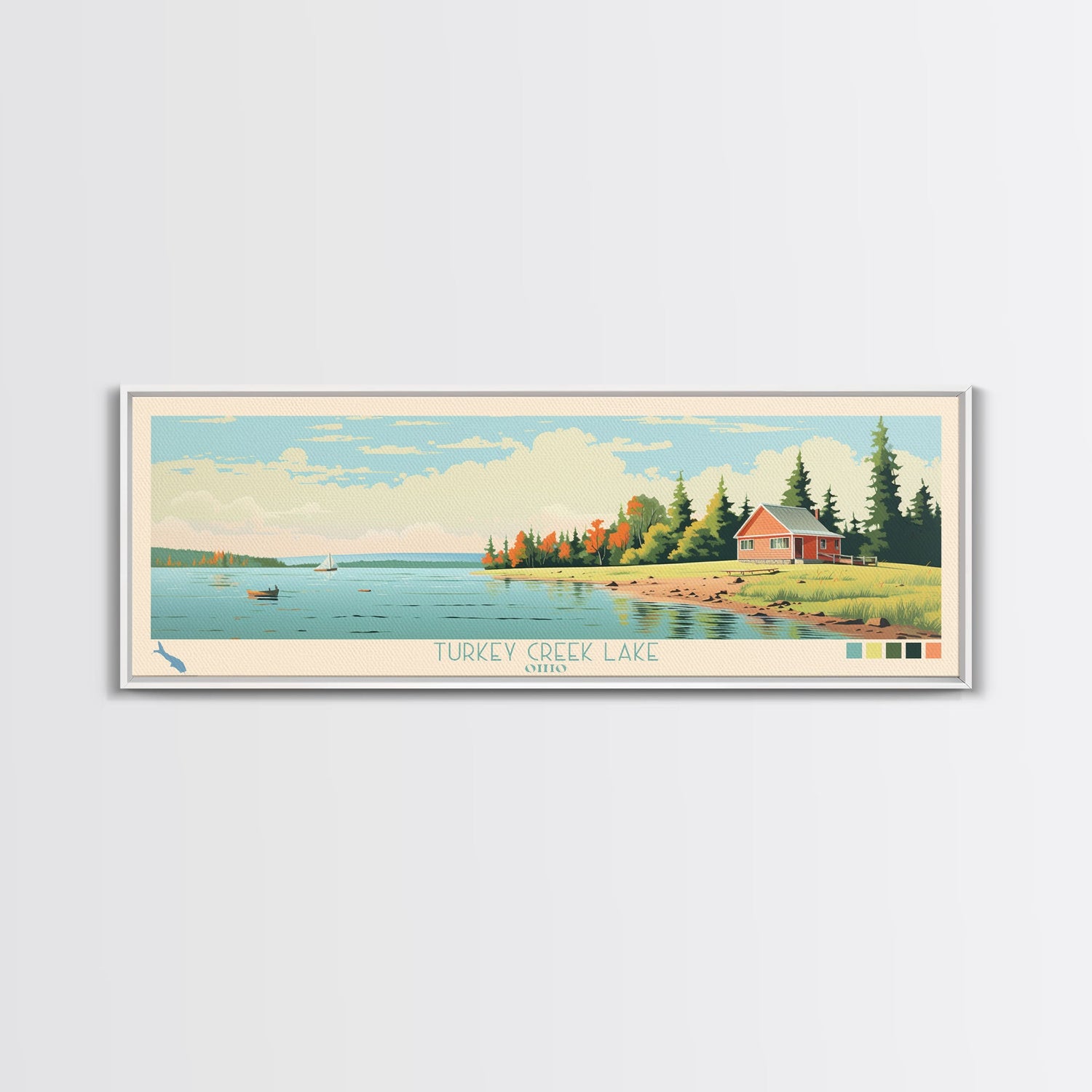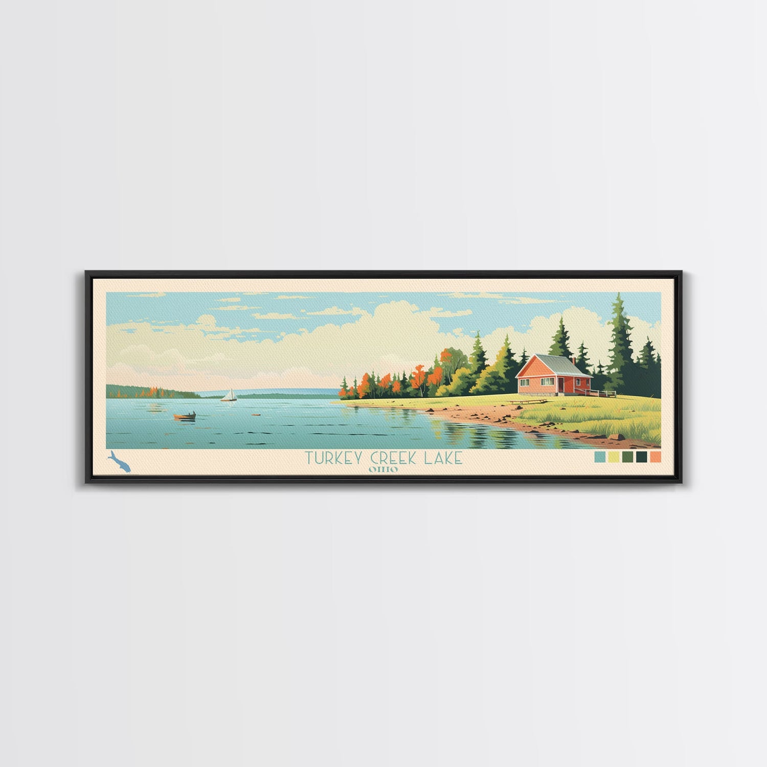 Turkey Creek Lake, Ohio Framed Canvas Print, Lake House Decor, Midcentury Modern Art, Pop Art, Travel Poster, Living Room Wall Art