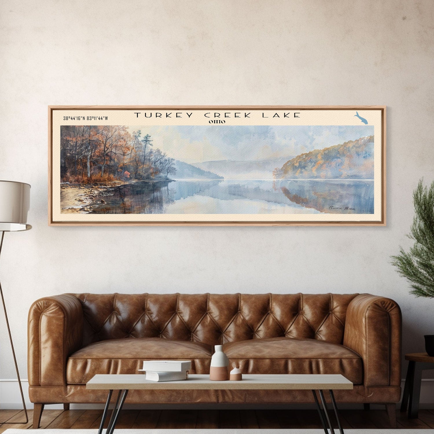 Turkey Creek Lake Ohio Panoramic Wall Art, Framed Canvas Print, Lake House Decor, Travel Poster, Serene Landscape, Living Room Art