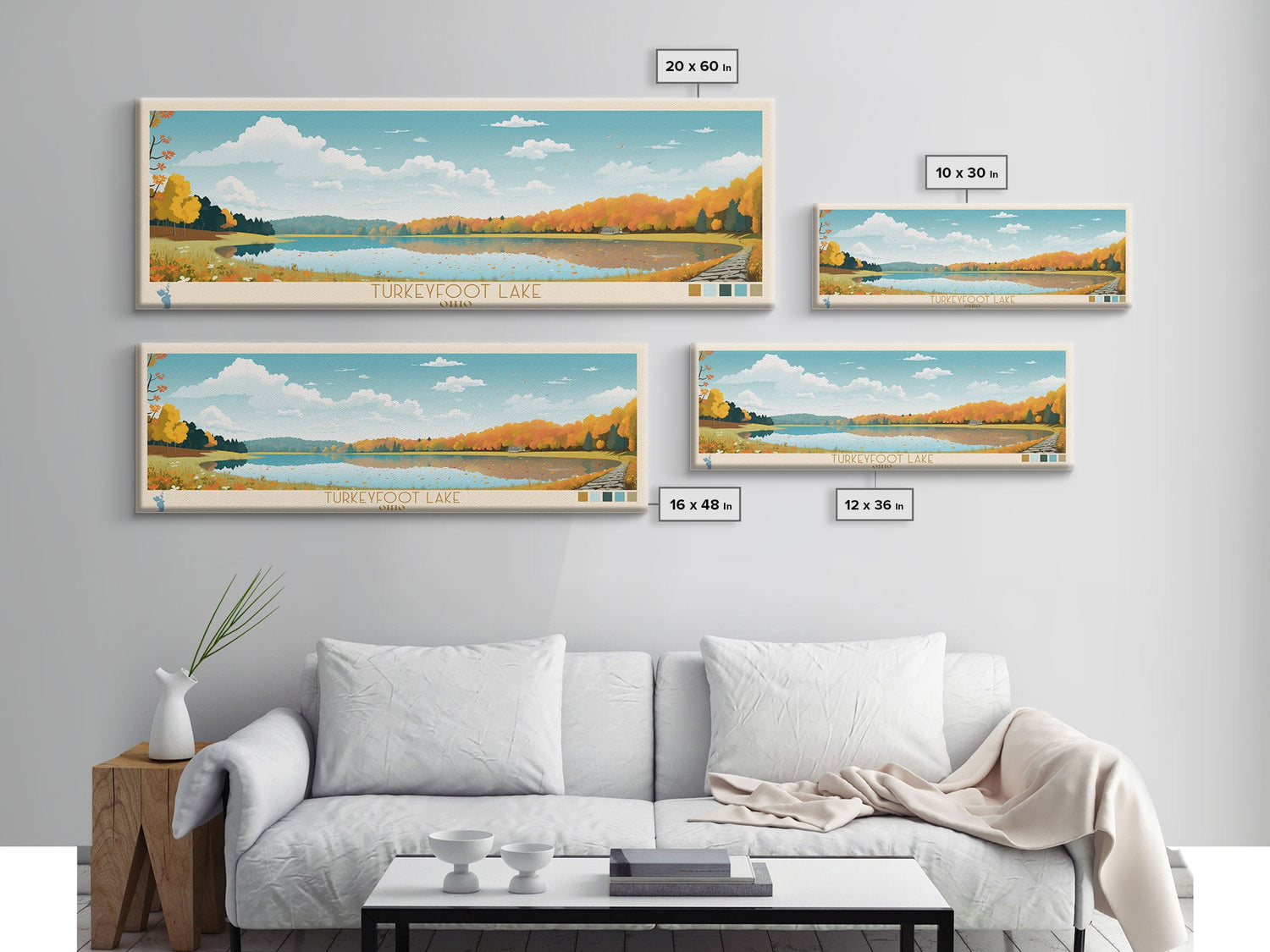 Turkeyfoot Lake, Ohio Framed Canvas Print, Lake House Art, Midcentury Modern Decor, Pop Art, Travel Poster, Bedroom Wall Art - 10x30 Inches / No Frame - Stretched Canvas Only está agotado y se enviará tan pronto como vuelva a estar disponible.