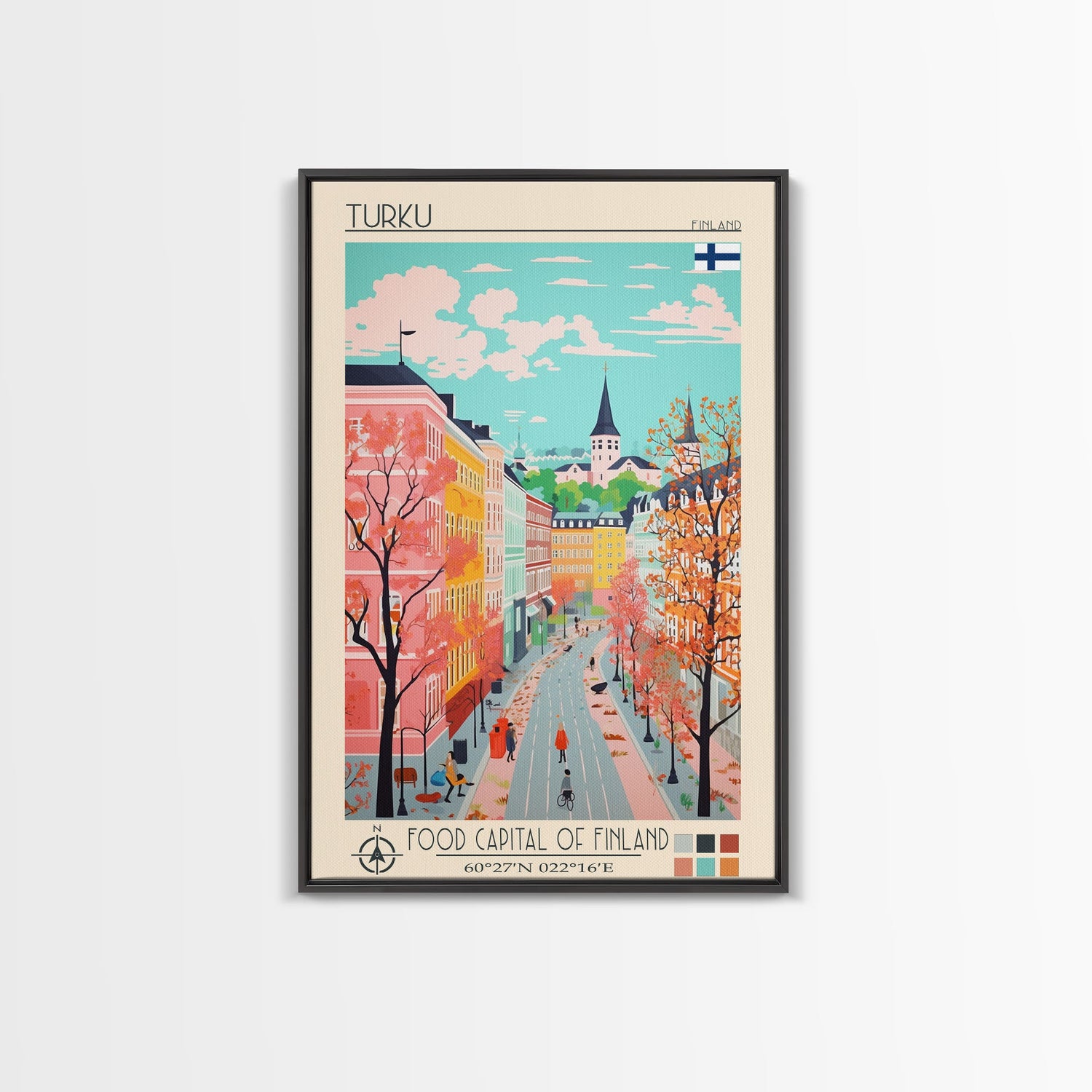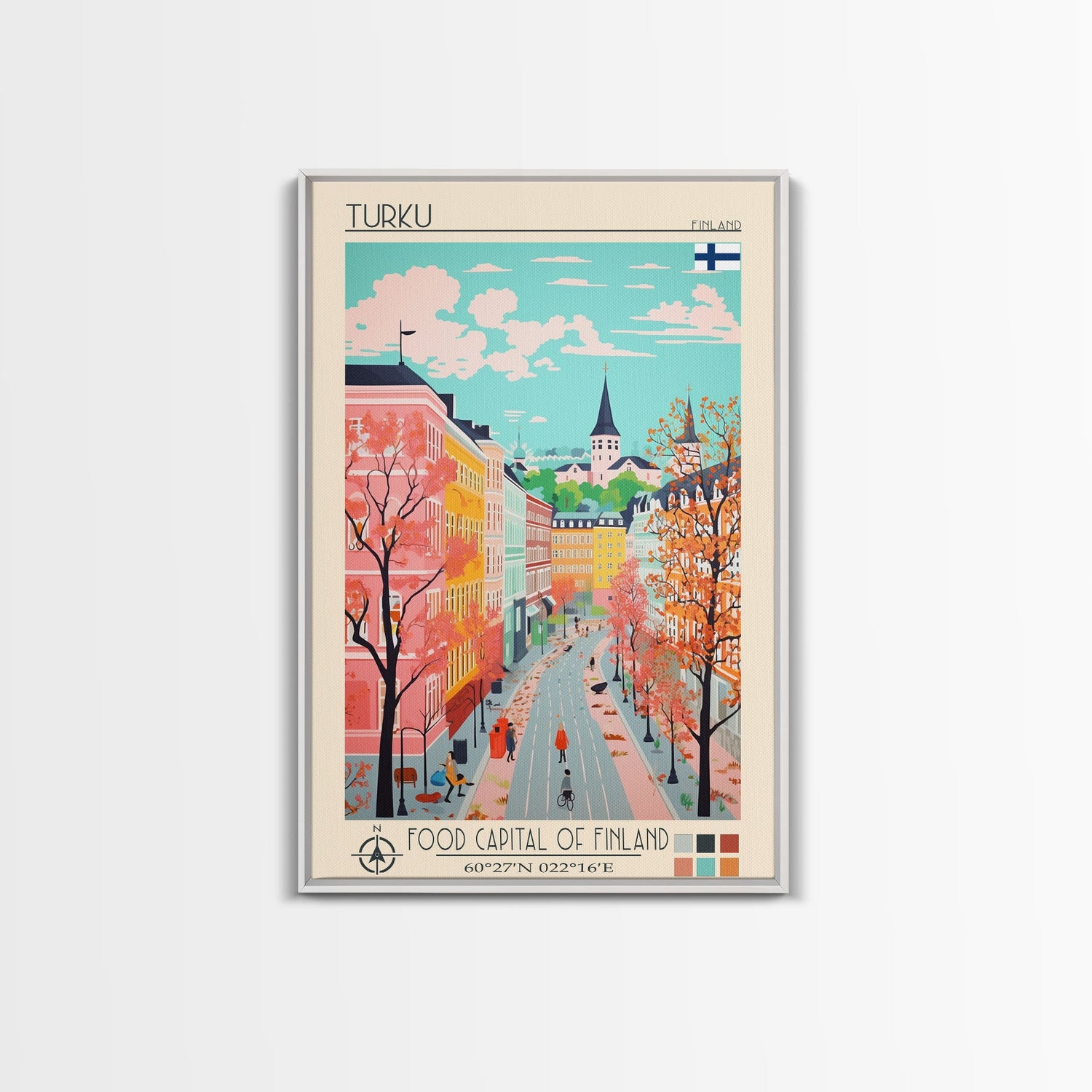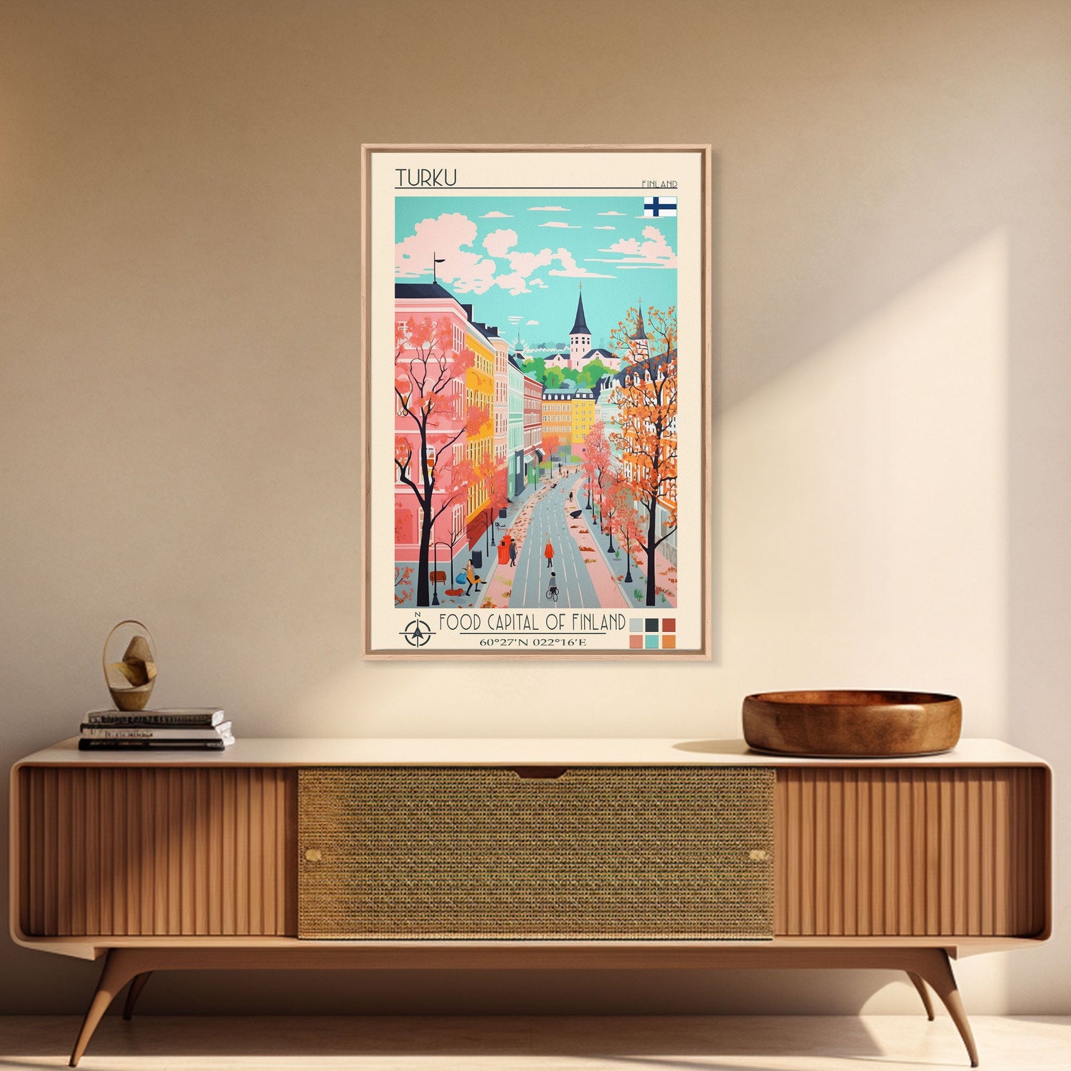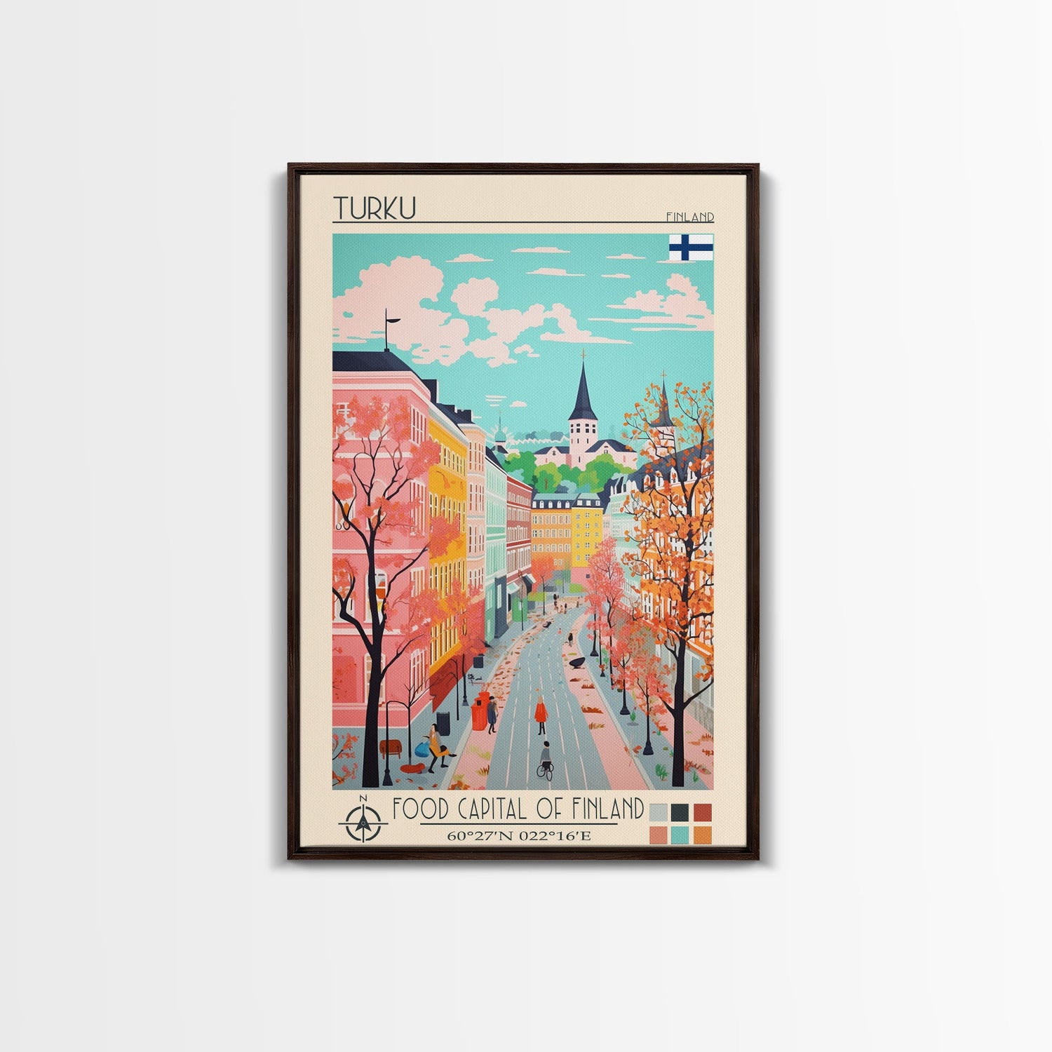 Turku Finland Travel Poster Framed Canvas Print, Midcentury Modern Art, Pop Art Wall Decor, Living Room Art, Scenic Wall Art