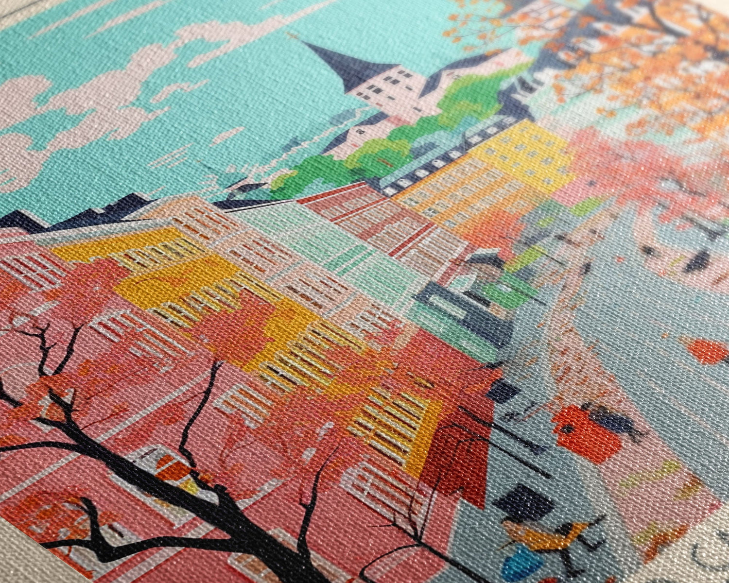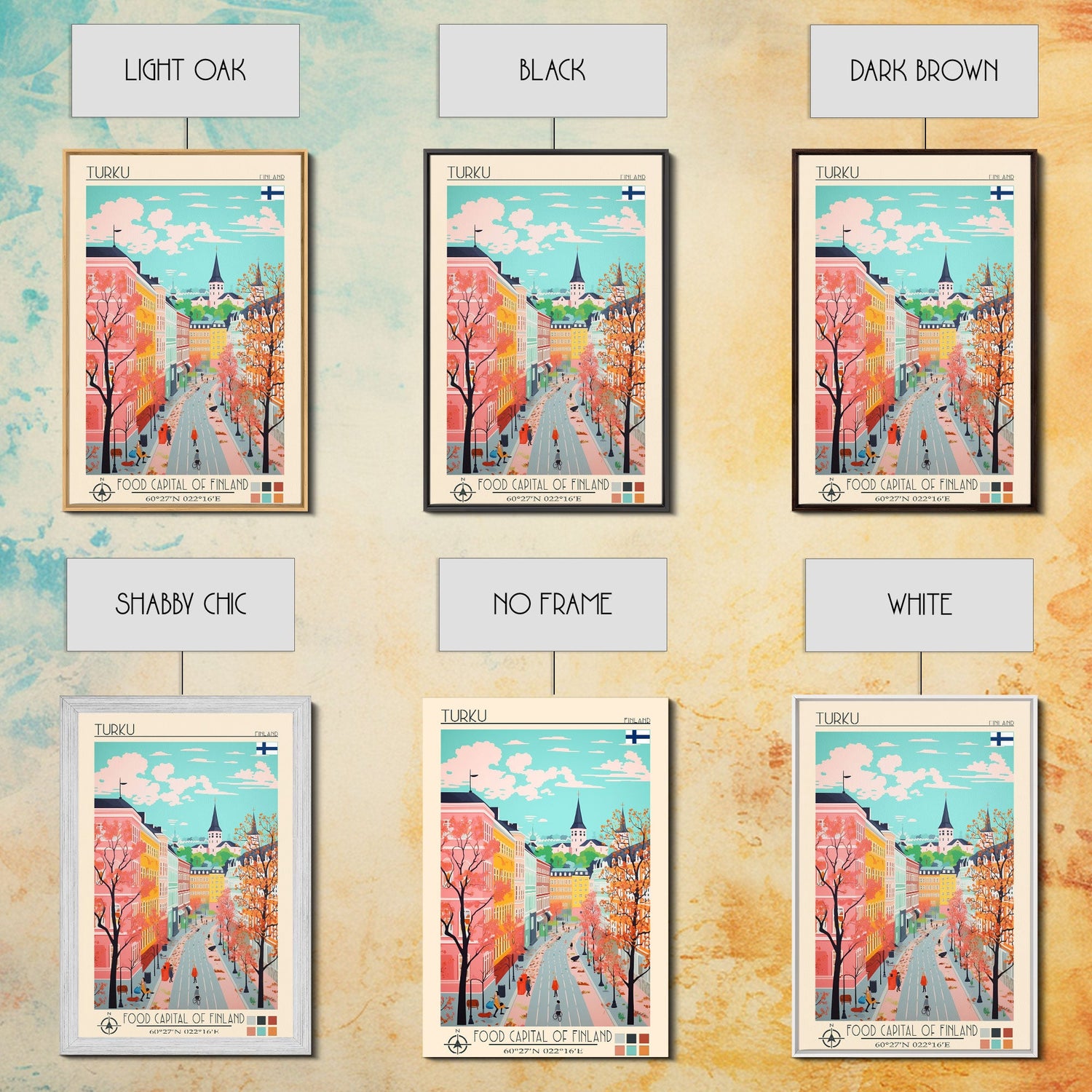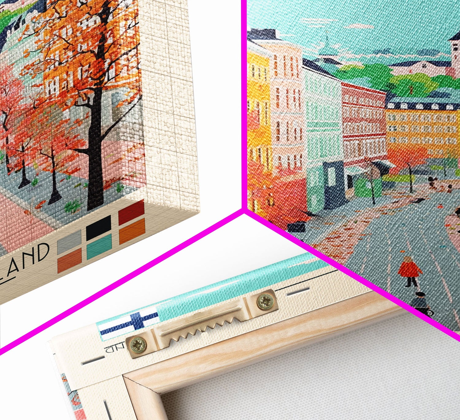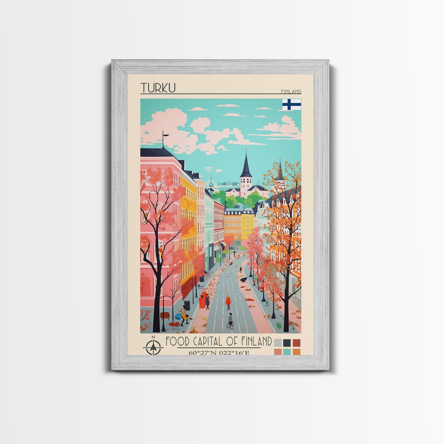 Turku Finland Travel Poster Framed Canvas Print, Midcentury Modern Art, Pop Art Wall Decor, Living Room Art, Scenic Wall Art