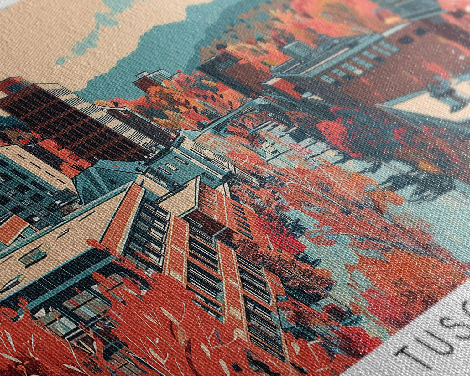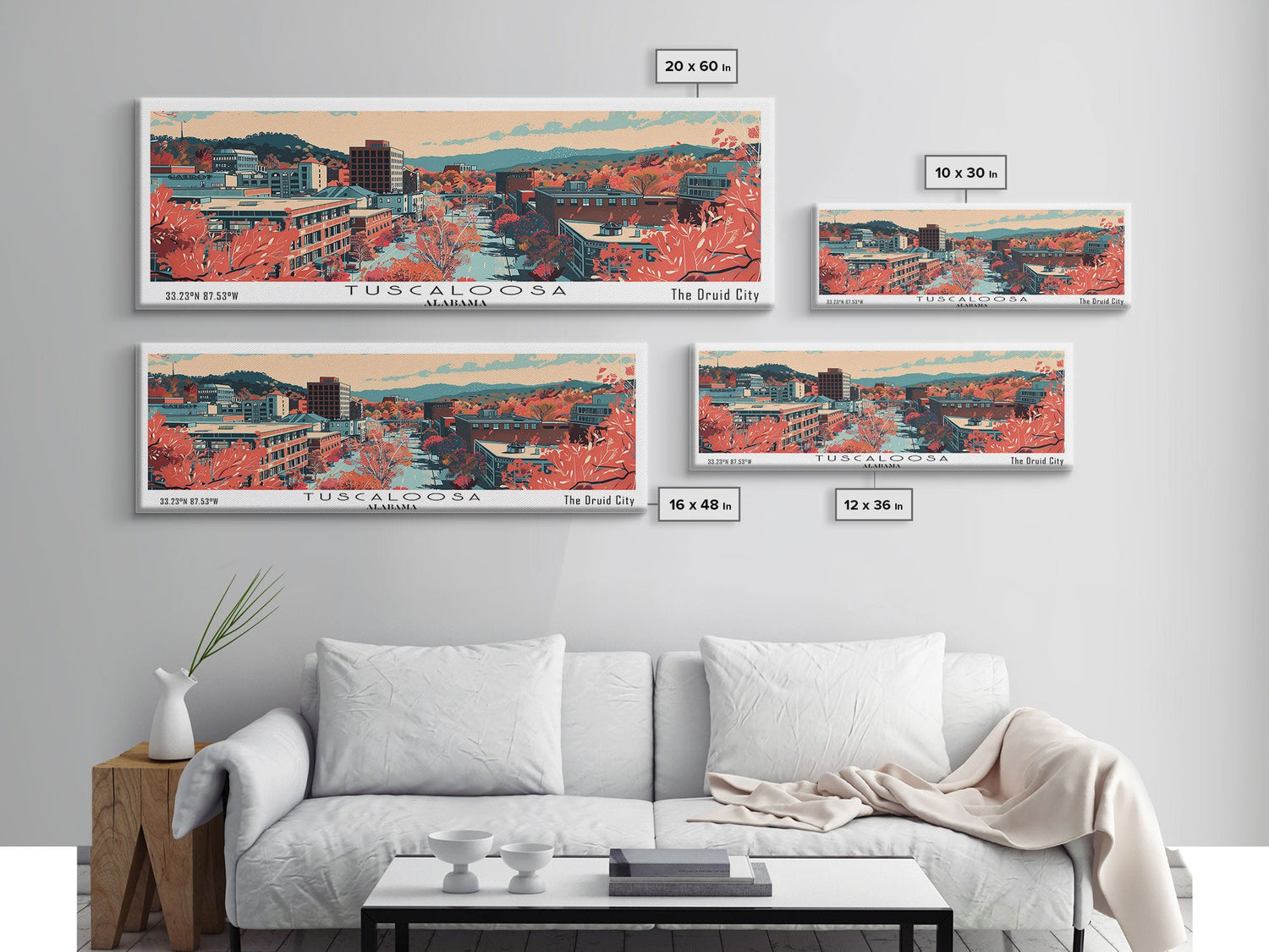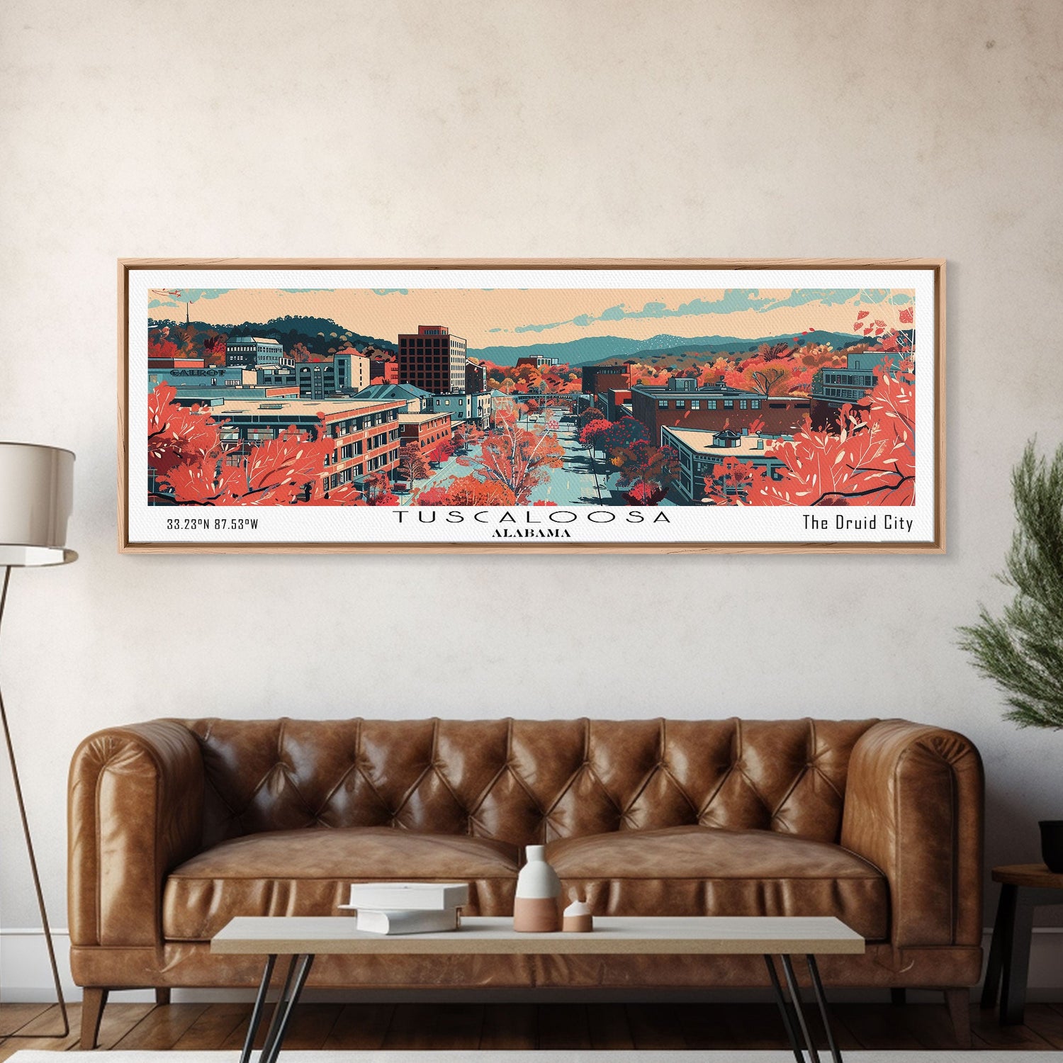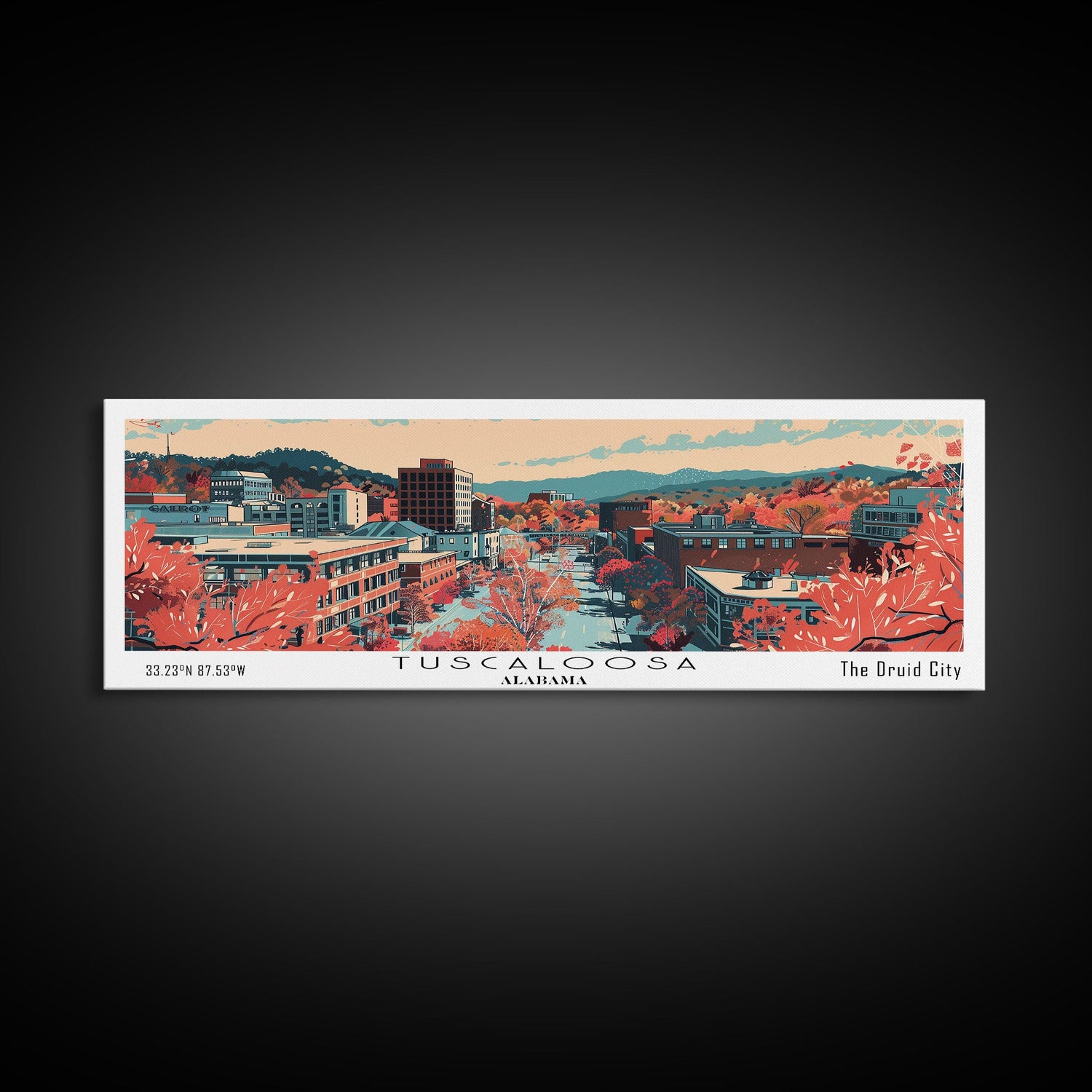 Tuscaloosa Alabama Panoramic Art, Mid Century Modern Framed Canvas Print, Retro Pop Art Travel Poster, Office Wall Art, Home Decoratio