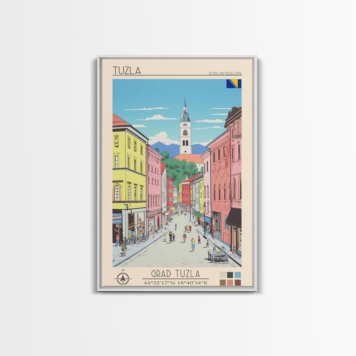 Tuzla Bosnia Travel Poster Framed Canvas Print, Midcentury Modern Art, Pop Art Wall Decor, Living Room Art, Vacation Gift