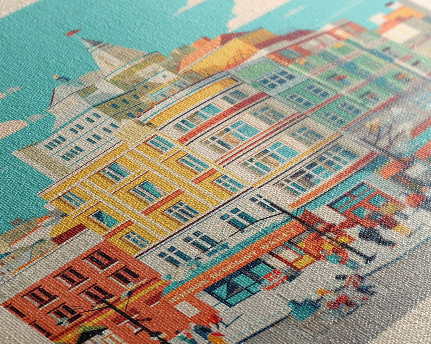 Ulyanovsk Russia Travel Poster Framed Canvas Print, Midcentury Modern Art, Pop Art Wall Decor, Living Room Art, Scenic Wall Art