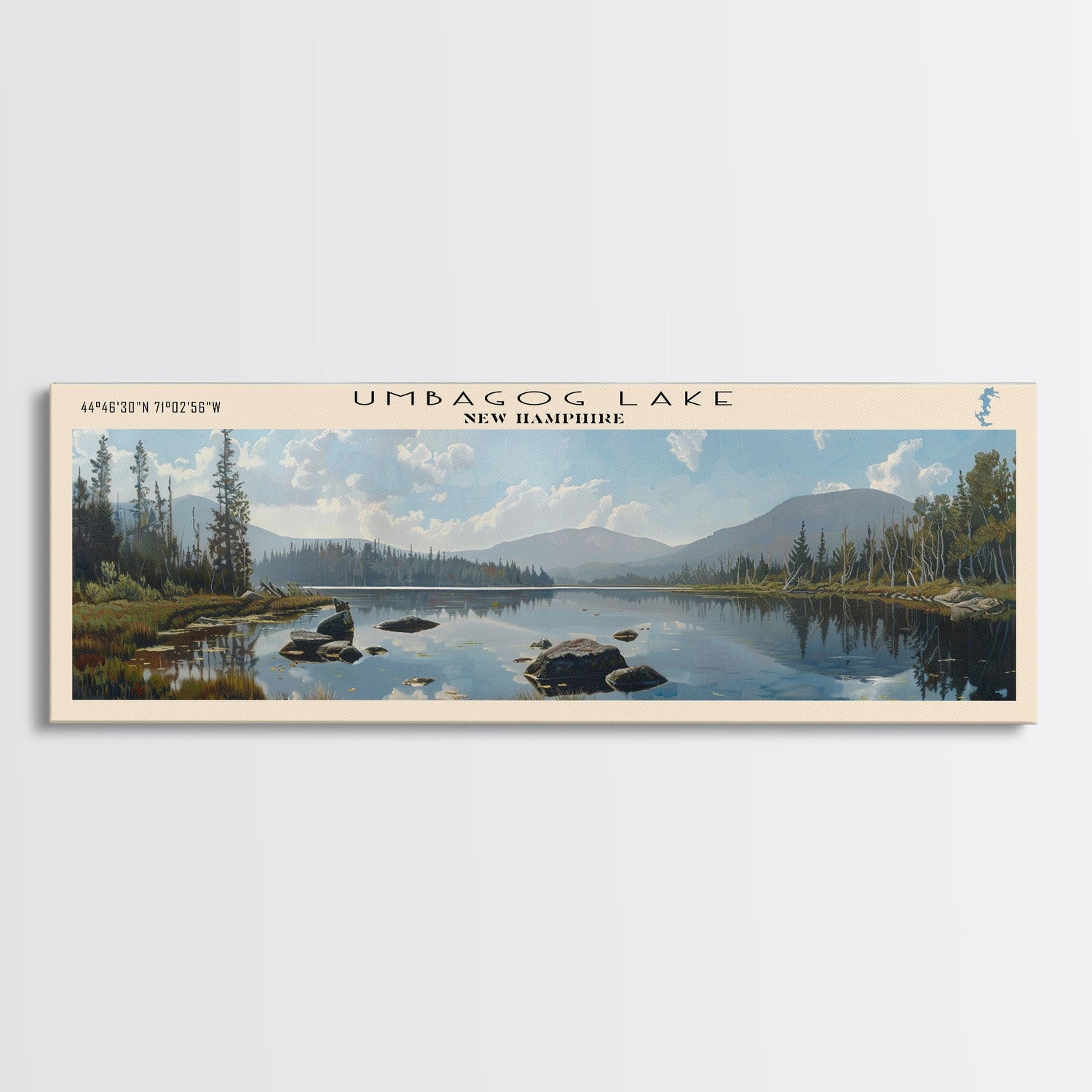 Umbagog Lake New Hampshire Panoramic Wall Art, Framed Canvas Print, Lake House Decor, Travel Poster, Serene Landscape, Living Room Art
