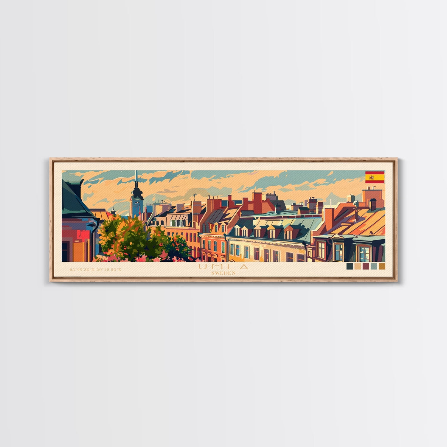Ume Sweden Panoramic Travel Poster, Framed Canvas Print or Metal Wall Art, Travel Art, Home Decor, Panoramic Painting, Midcentury Art - 10x30 Inches / No Frame - Stretched Canvas Only está agotado y se enviará tan pronto como vuelva a estar disponible.