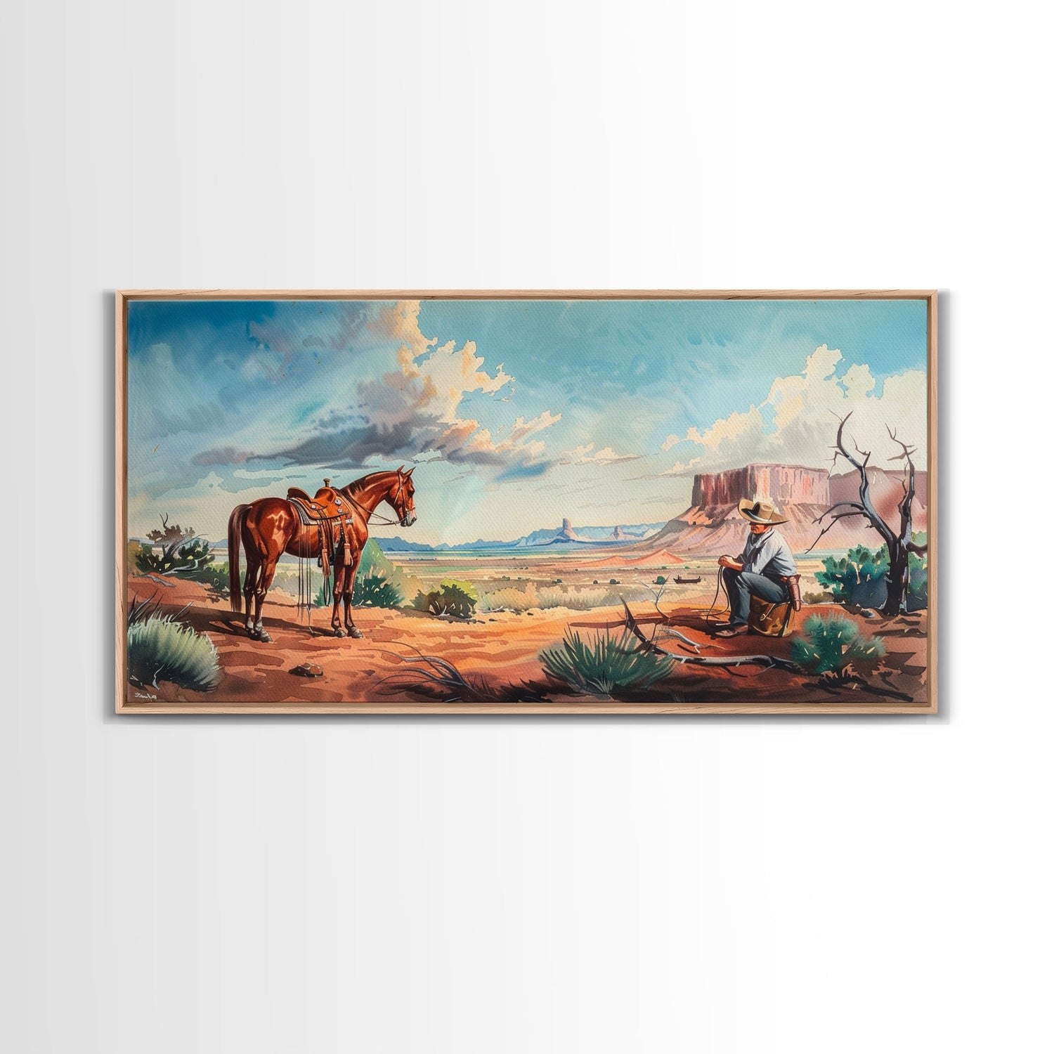 Vibrant Desert Sunset with Cactus, Abstract Desert Sunset Art, Framed Canvas Print, Southwestern Living Room Wall Art, Boho Decor - 10x20 Inches / Gallery Wrap Canvas - Ready To Hang está agotado y se enviará tan pronto como vuelva a estar disponible.