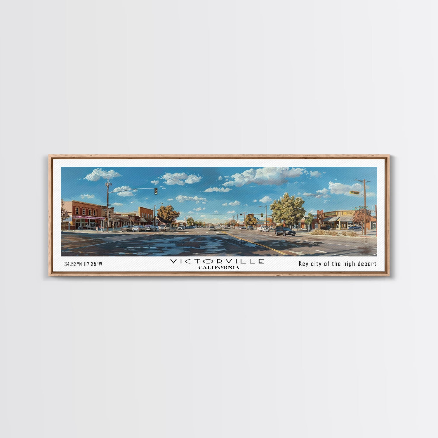 Victorville California Panoramic Wall Art, Framed Canvas Print, Retro Style Travel Poster, Unique Home Decor, Artistic Office Piece, Original Gift