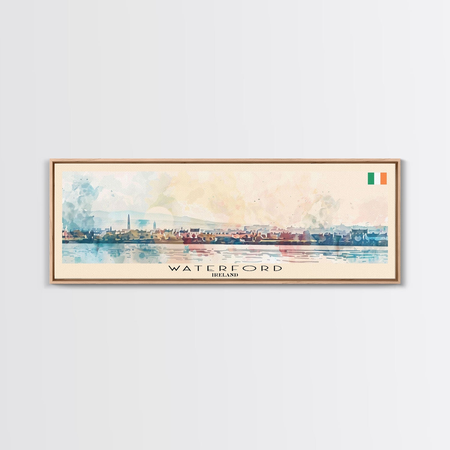 Waterford Ireland Panoramic Travel Poster, Framed Canvas Print or Metal Wall Art, Travel Art, Home Decor, Panoramic Painting, Midcentury Art
