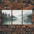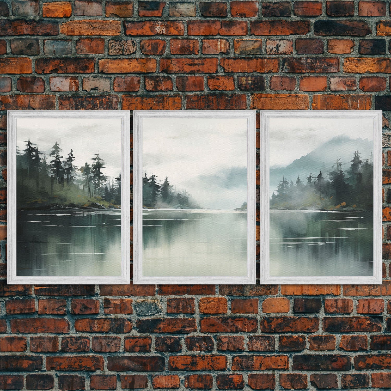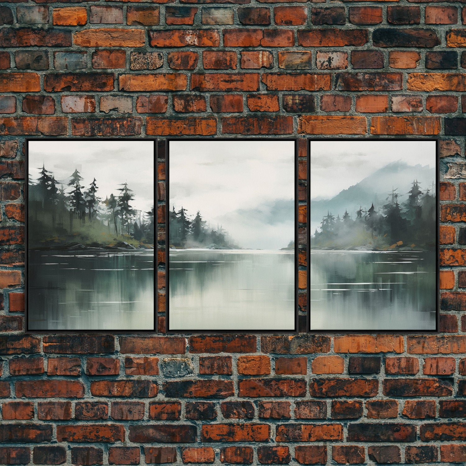 3 Piece Triptych Canvas Print Set, Oil Painting Landscape Painting, Tropical River Scene, Minimalist Boho Decor