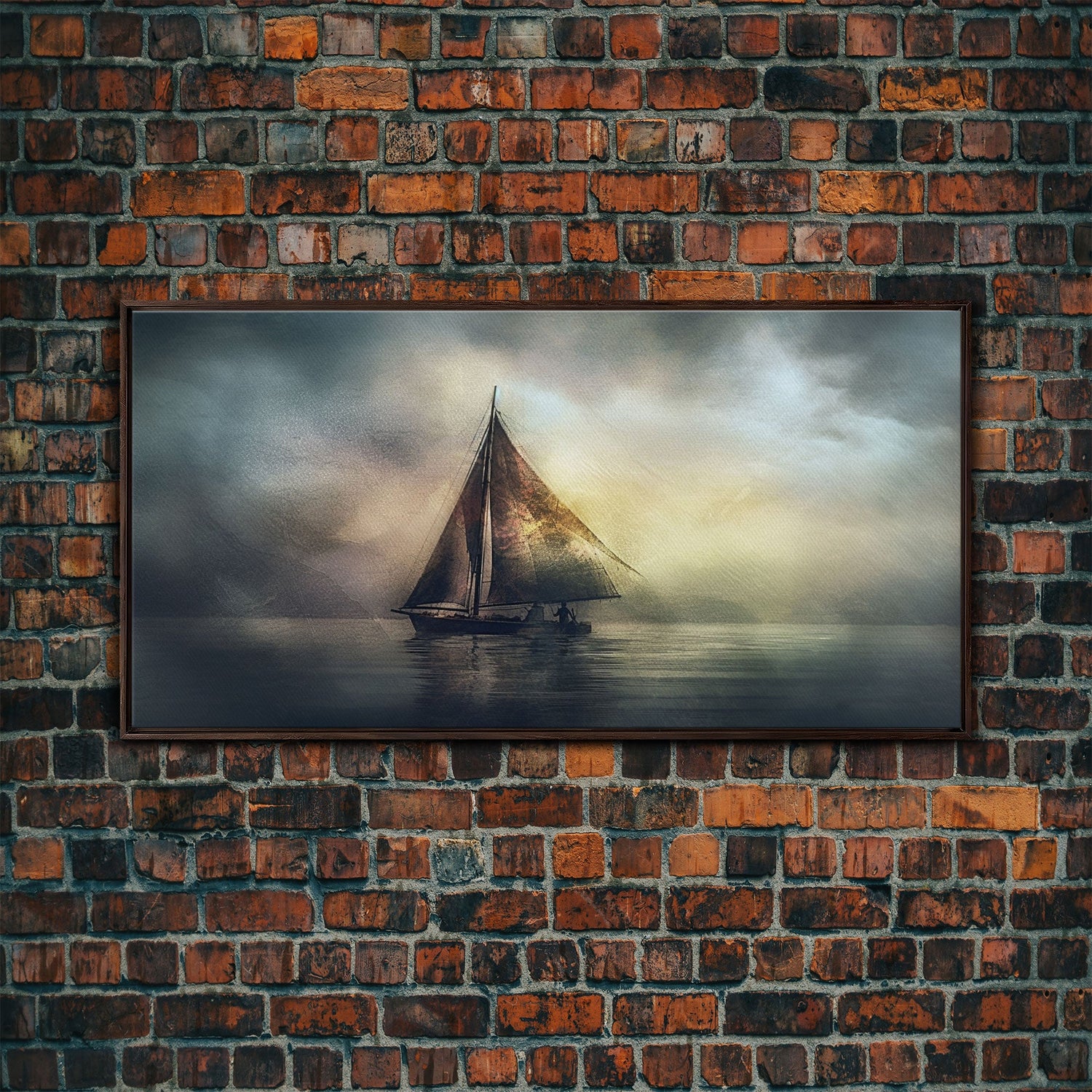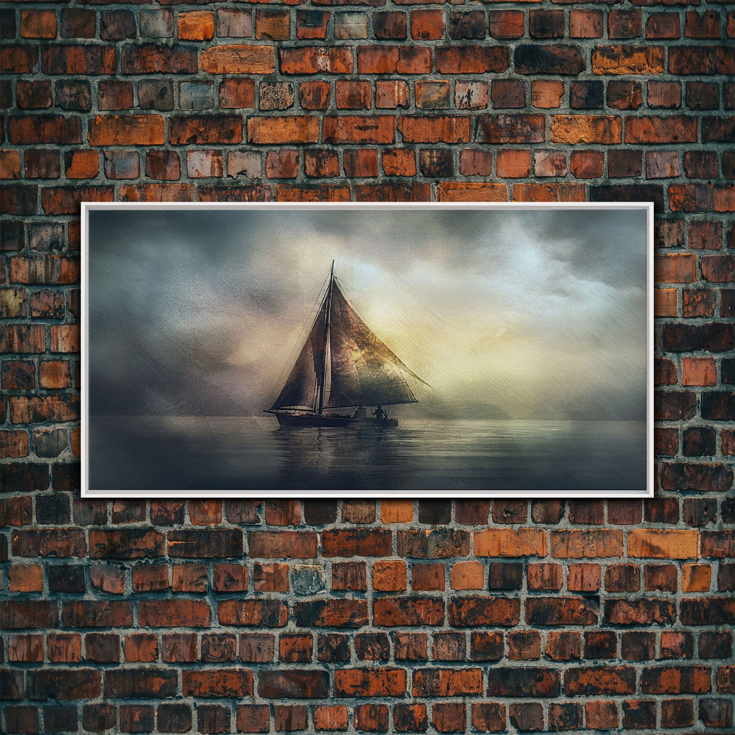 Abstract Sailboat Wall Decor, Ocean Wall Art, Seascape, Storm Wall Decor, Panoramic Wall Decor, Canvas Print, Wall Art, Framed Canvas Art