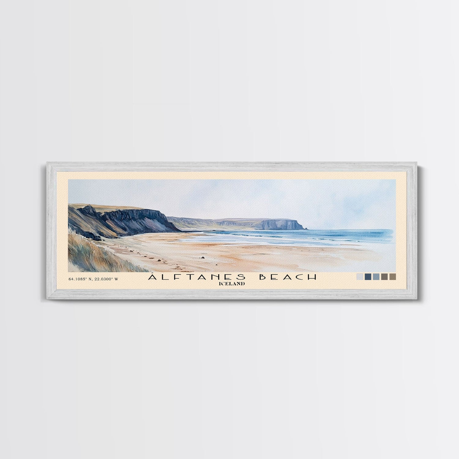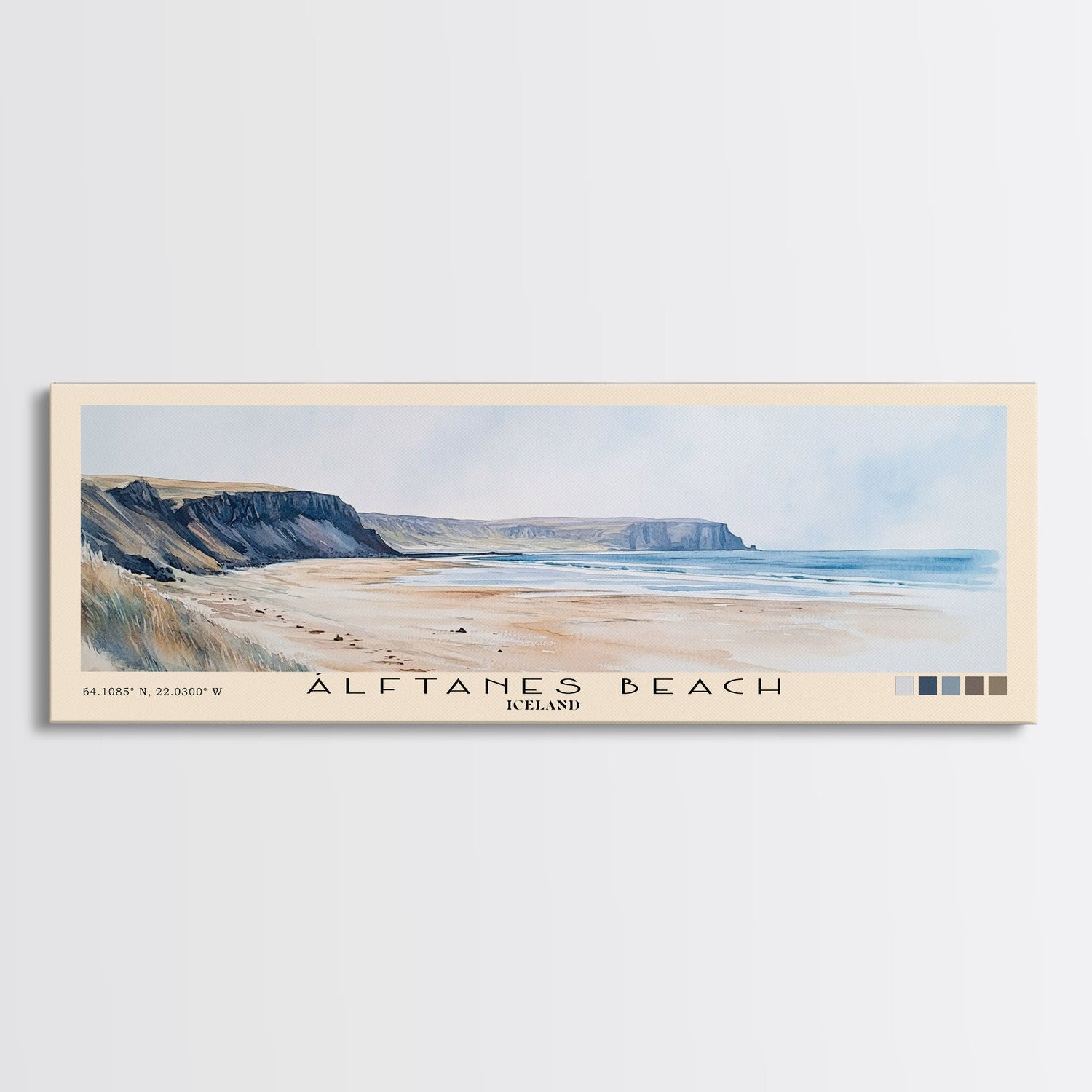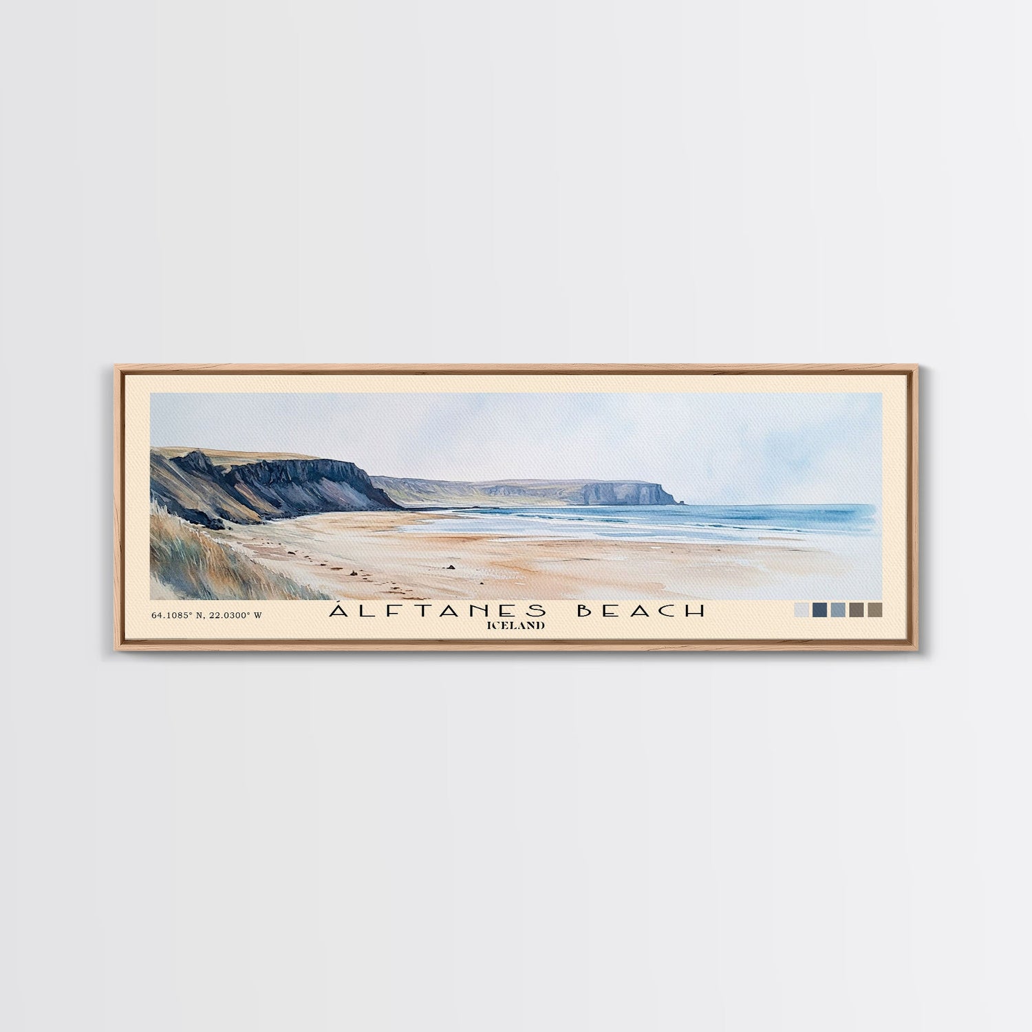 Álftanes Beach, Iceland Watercolor Print, Vacation Gift, Iceland Wall Art, Beach Painting, Beach Decor, Large Wall Art, Wood Frame Art - 10x30 Inches / Gallery Wrap Canvas - Ready To Hang is backordered and will ship as soon as it is back in stock.