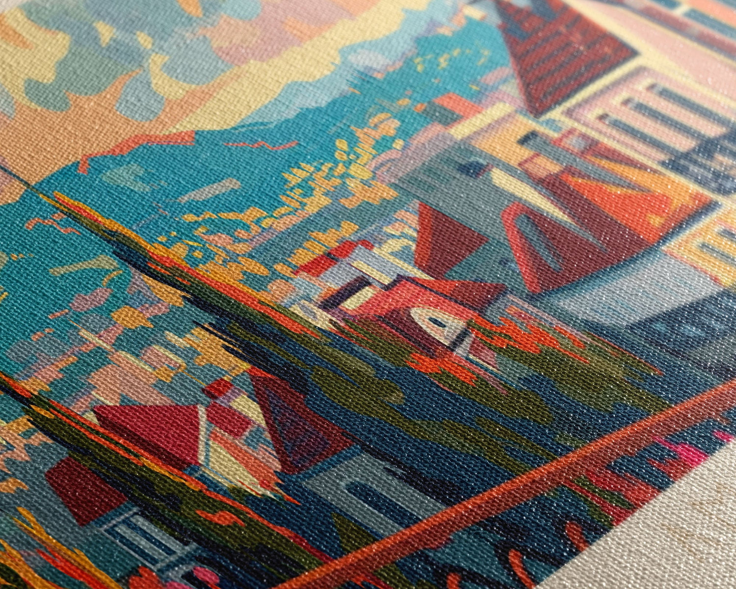 Most of our canvases are made in the USA, with the exception of canvases ordered with the light oak unstained frames, and any large canvases (24x48, 30x60, 16x48 and 20x60) ordered WITH a frame. These are temporarily made in and shipped from Europe, while we try to find a more consistent supplier in the USA.