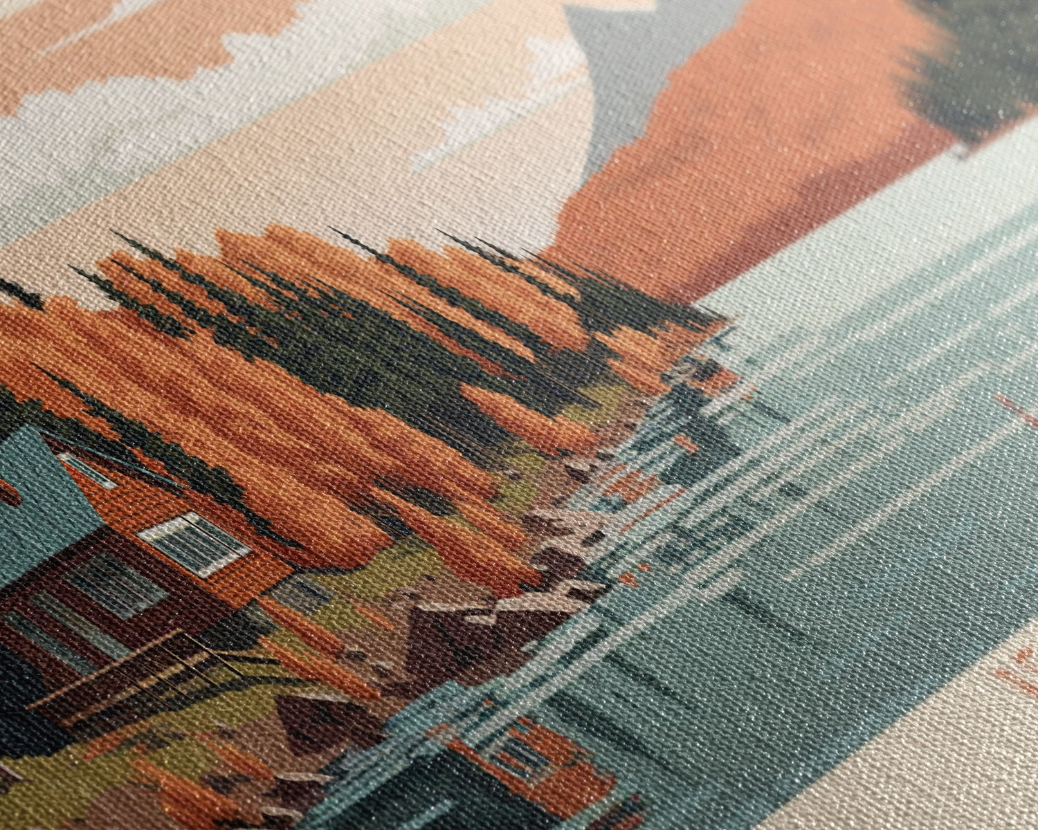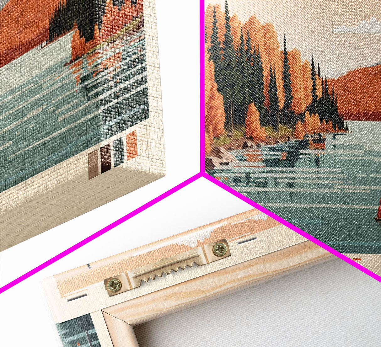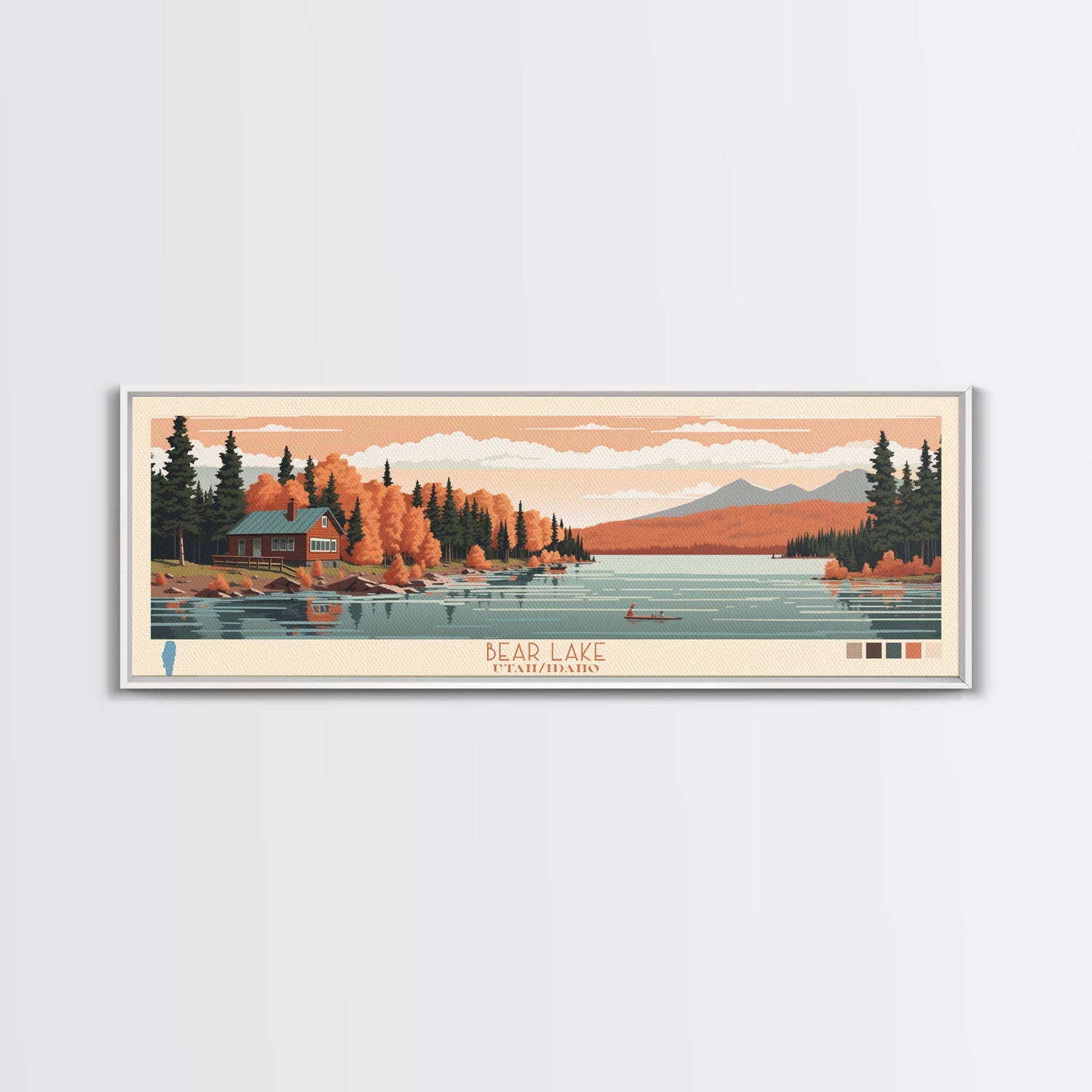 Bear Lake Utah Idaho Framed Canvas Print, Panoramic Travel Poster, Midcentury Modern Wall Art, Pop Art, Nature Living Room Art, Lake House Decor