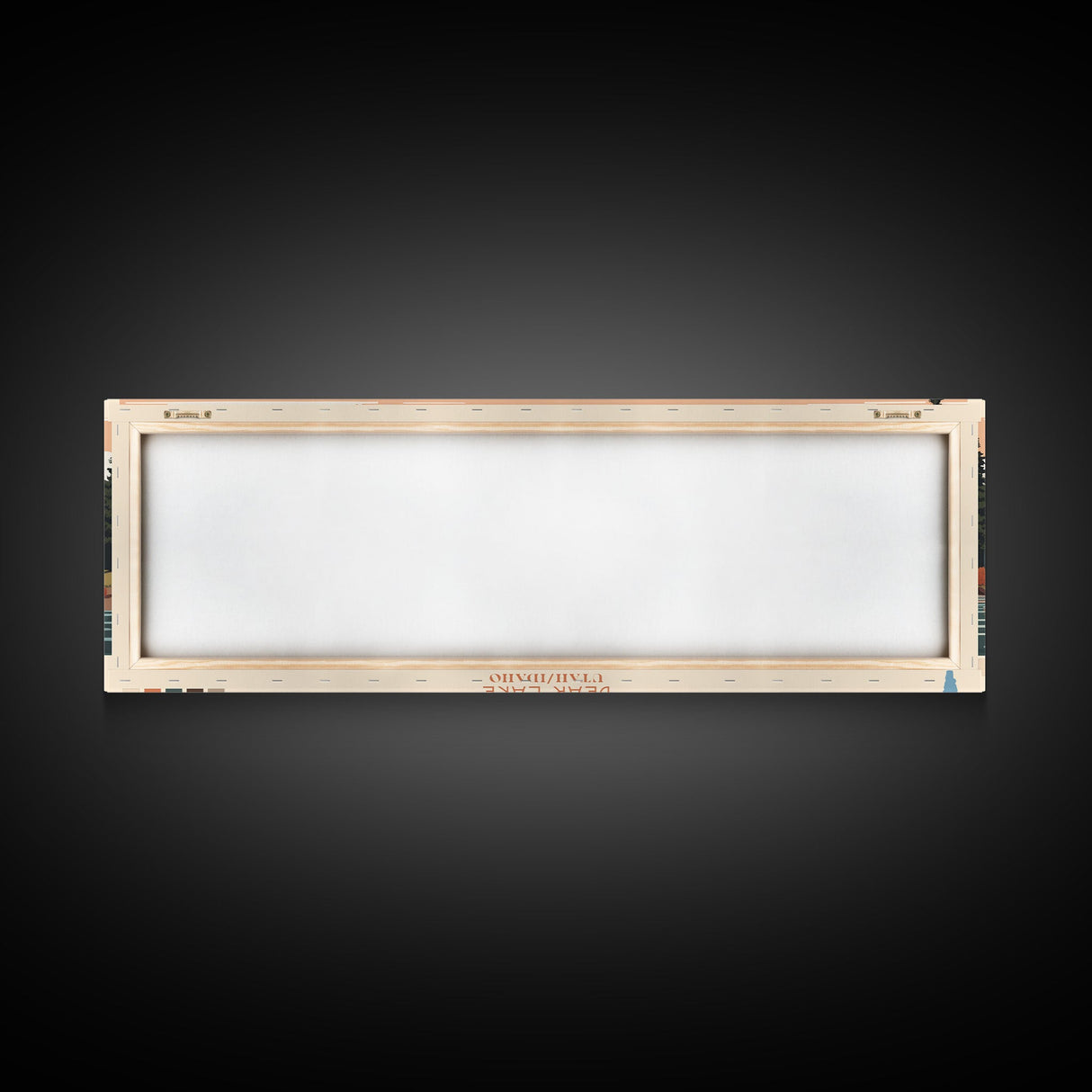 Bear Lake Utah Idaho Framed Canvas Print, Panoramic Travel Poster, Midcentury Modern Wall Art, Pop Art, Nature Living Room Art, Lake House Decor - 10x30 Inches / No Frame - Stretched Canvas Only is backordered and will ship as soon as it is back in stock.