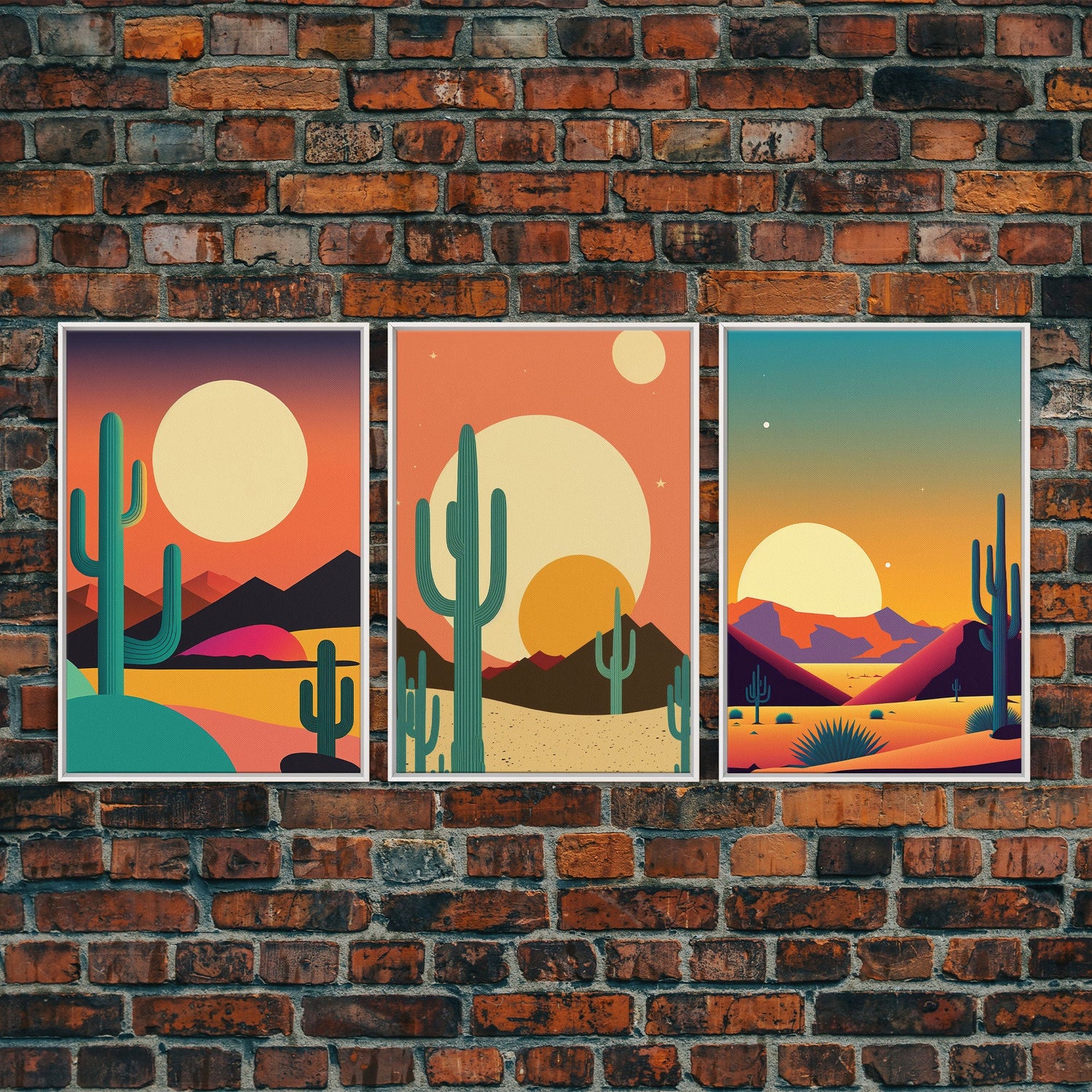 Desert Art, Desert Prints, Trendy Wall Prints, Framed Canvas Art, 3 Piece Wall Prints, Southwestern Decor, Primitive Cactus Art, Arizona Art