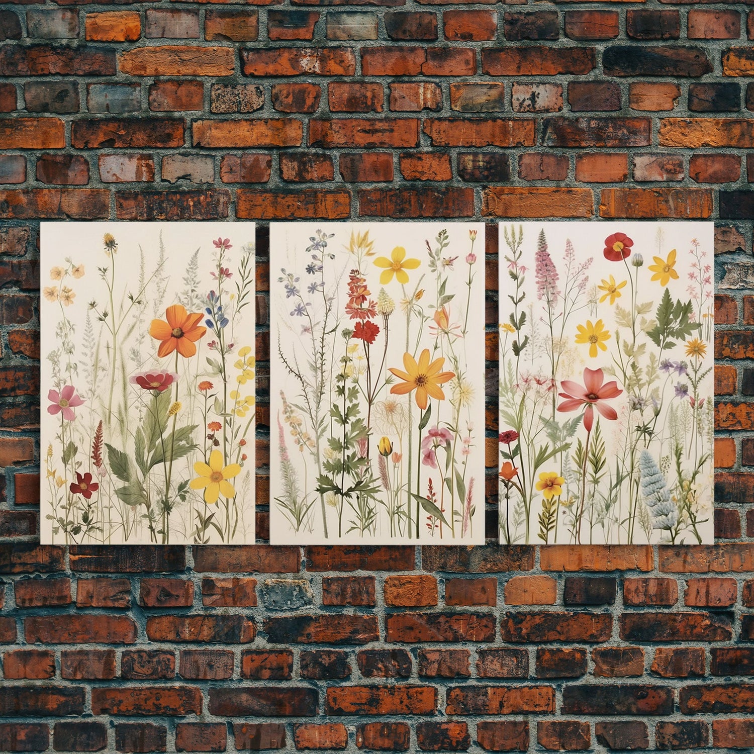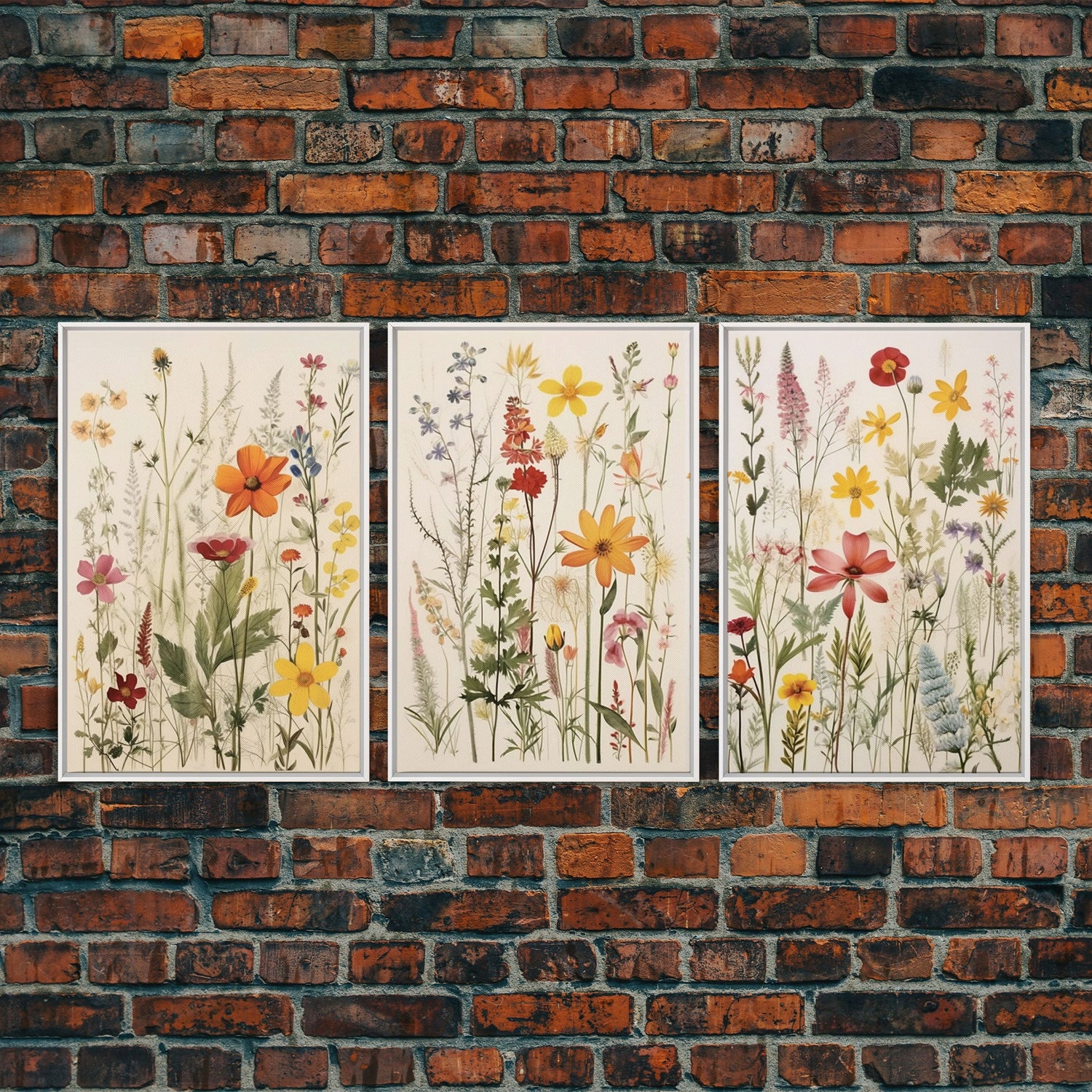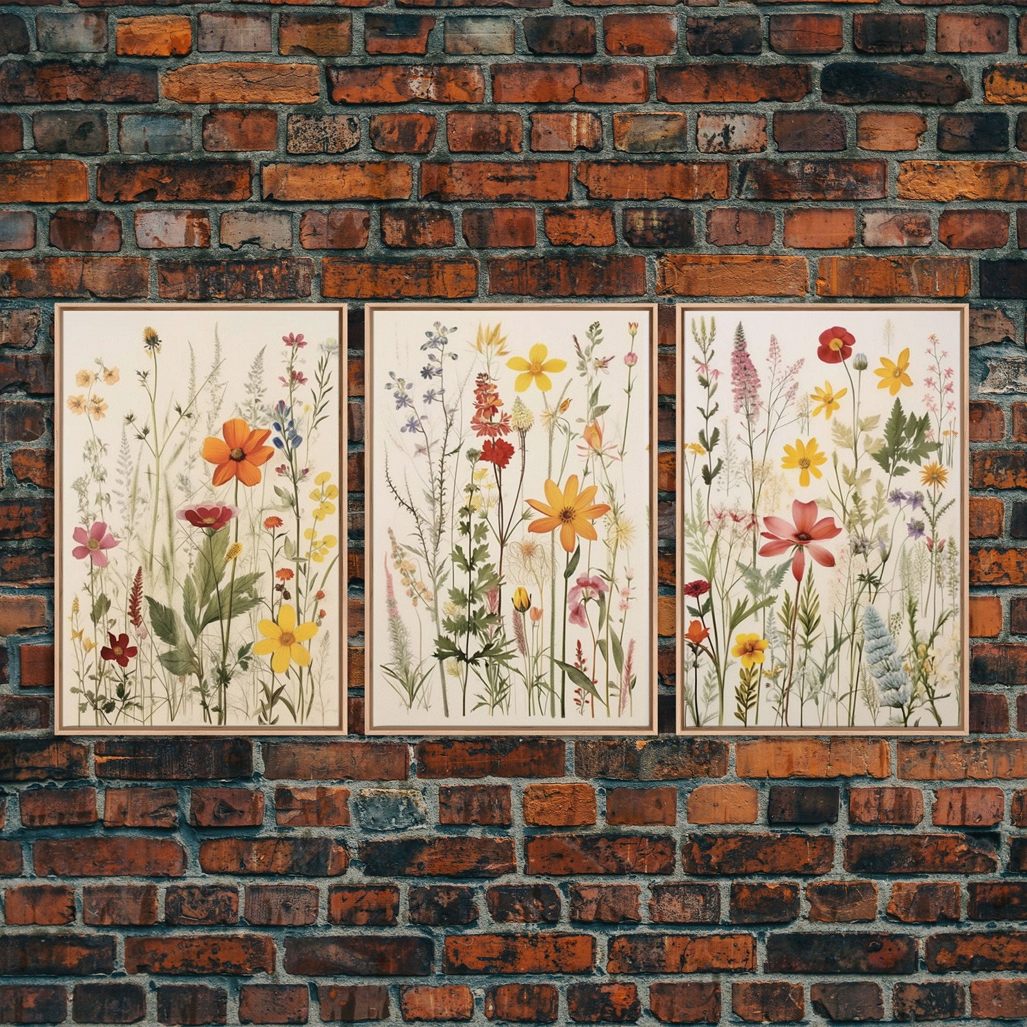 Framed Canvas Wall Art Set, 3 Piece Art, Watercolor Wildflowers Floral / Botanical Print, Minimalist Wall Art, Boho Decor, Colorful Art - 8x12 In. - 3 Pieces / Stretched Canvas is backordered and will ship as soon as it is back in stock.