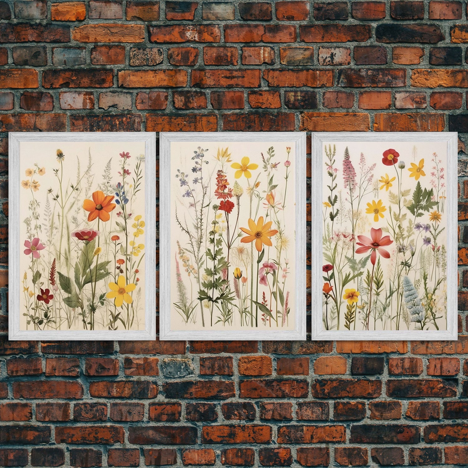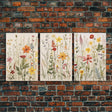Framed Canvas Wall Art Set, 3 Piece Art, Watercolor Wildflowers Floral / Botanical Print, Minimalist Wall Art, Boho Decor, Colorful Art