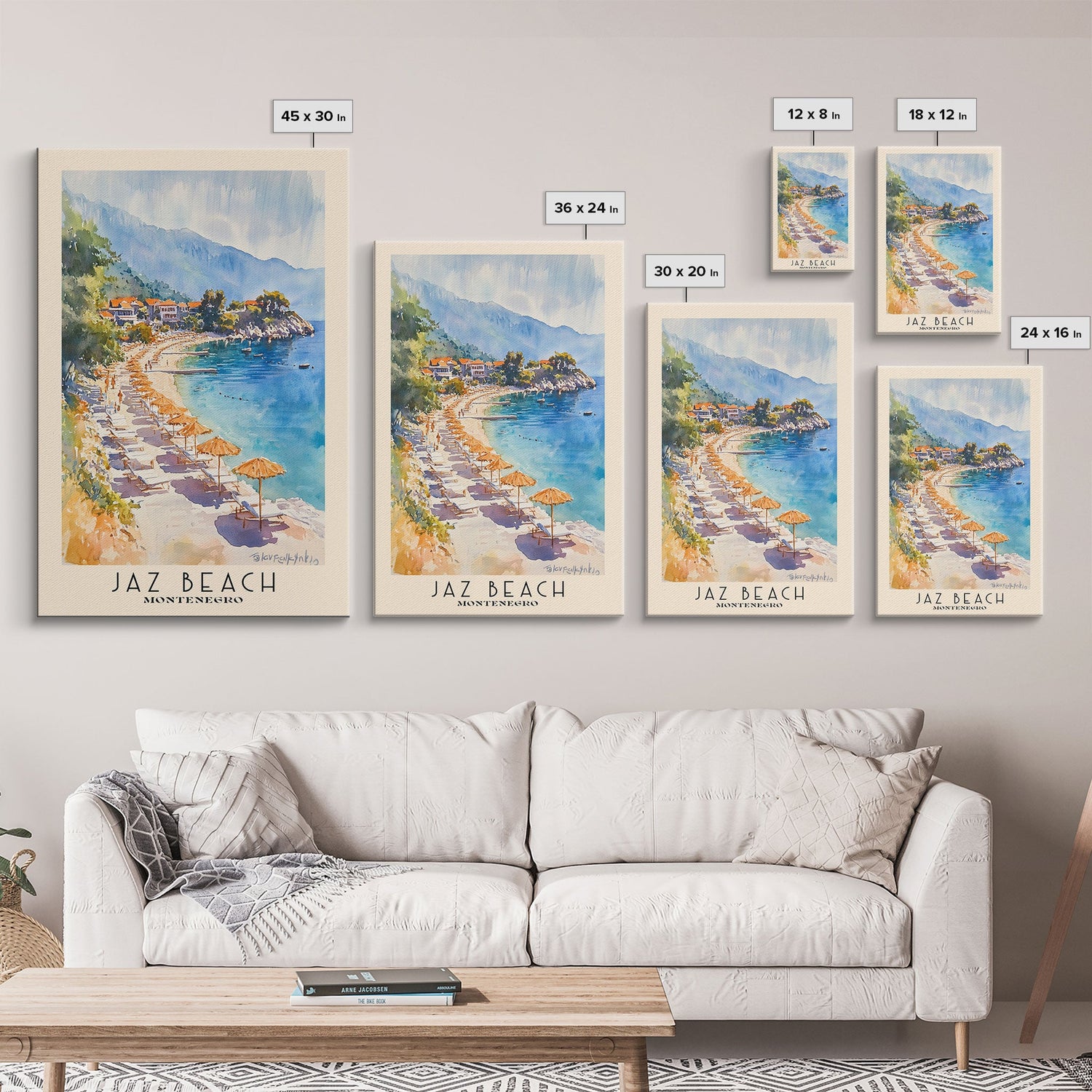 Jaz Beach, Montenegro Watercolor Beach Print, Vacation Gift, Montenegro Wall Art, Beach Painting, Beach Decor, Beach Painting - 8x12 Inches / Gallery Wrap Canvas - Ready To Hang is backordered and will ship as soon as it is back in stock.