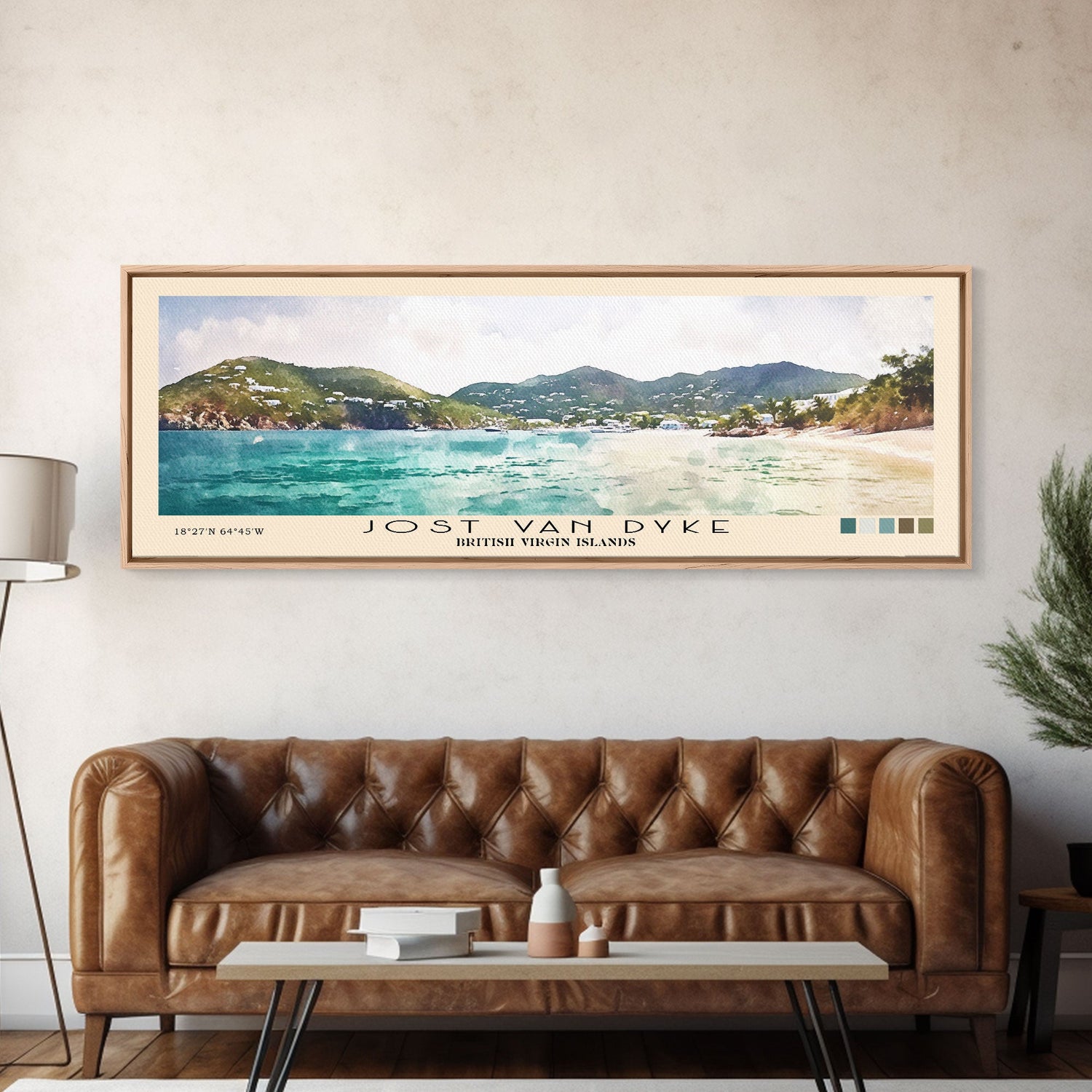 Jost Van Dyke, British Virgin Islands , United Kingdom Watercolor Beach Print, Vacation Gift, United Kingdom Wall Art, Beach Painting, Beach Decor, Beach Painting - 10x30 Inches / Gallery Wrap Canvas - Ready To Hang is backordered and will ship as soon as it is back in stock.