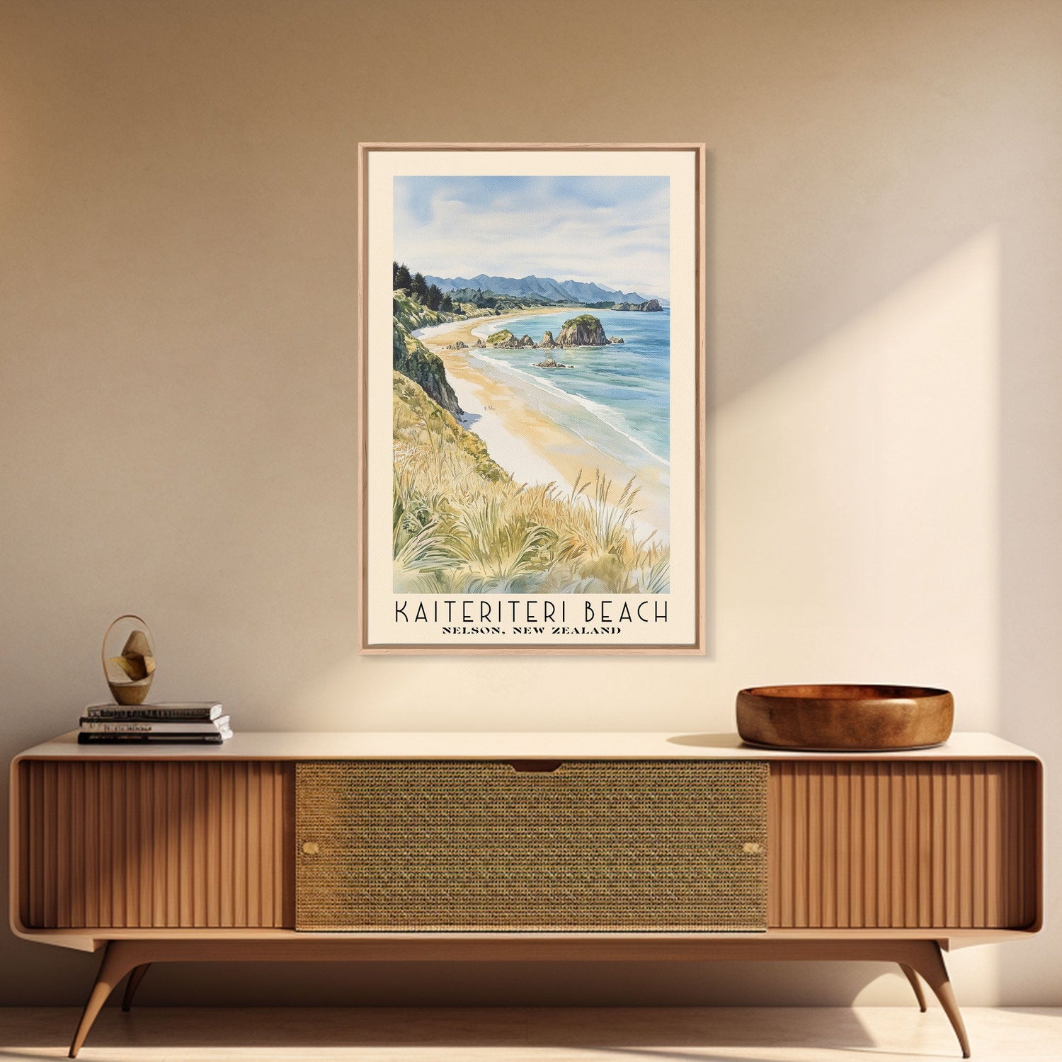 Kaiteriteri Beach, Nelson, New Zealand Watercolor Print, Vacation Gift, Nelson, New Zealand Wall Art, Beach Painting, Beach Decor, Large Wall Art, Wood Frame Art