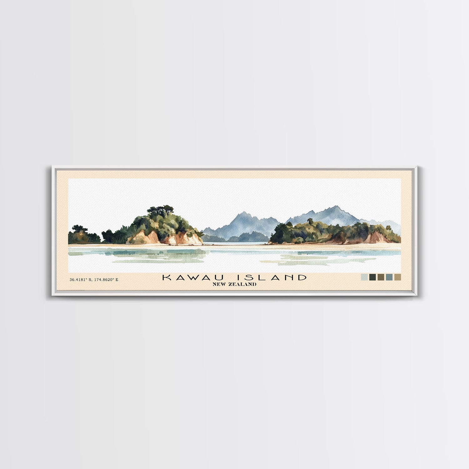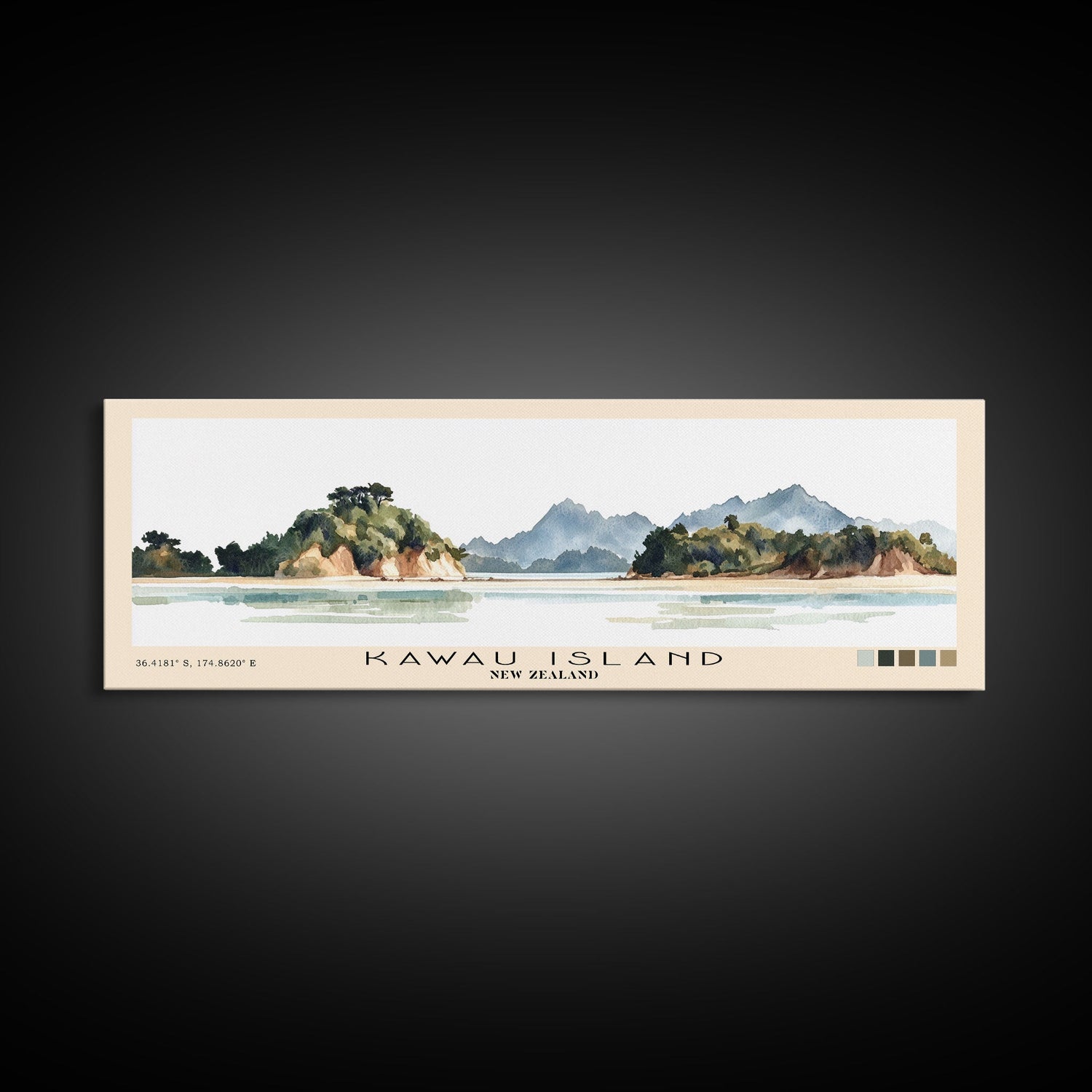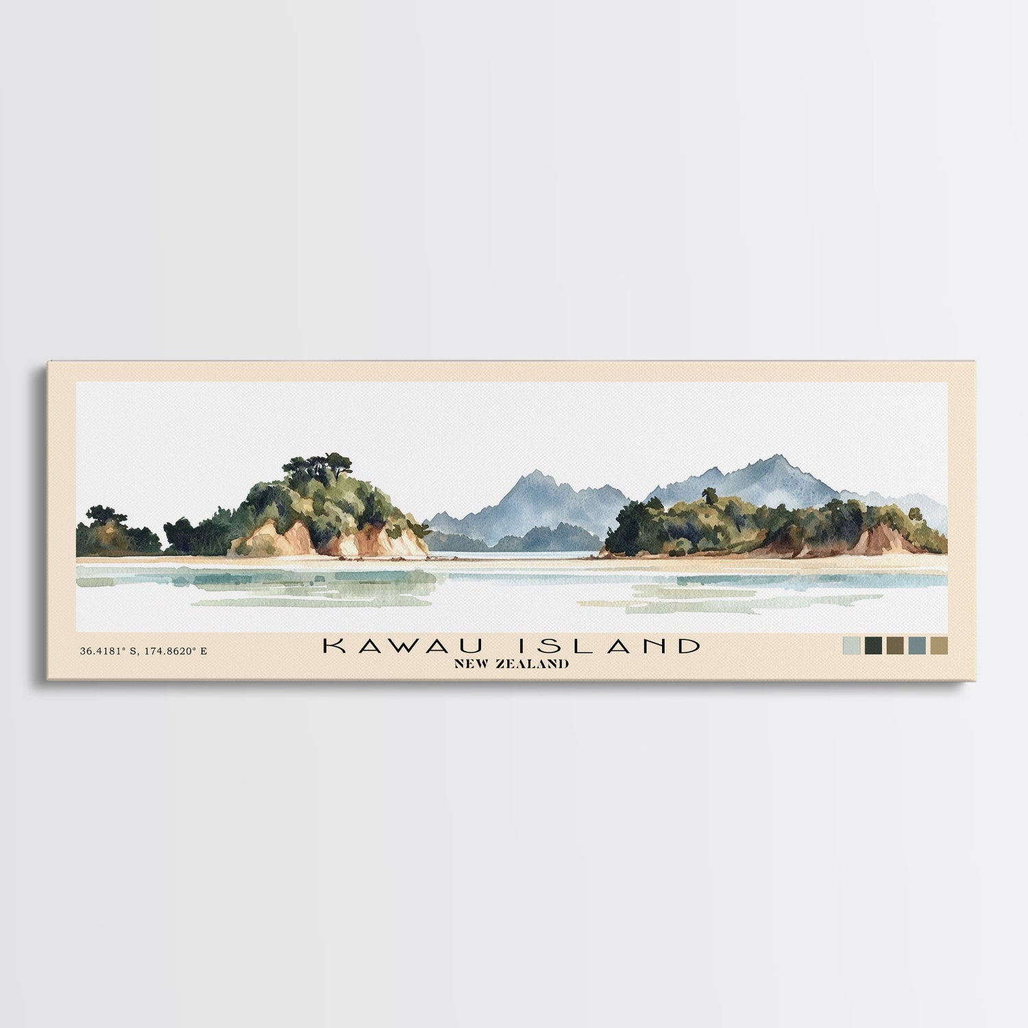 Kawau Island, New Zealand Watercolor Beach Print, Vacation Gift, New Zealand Wall Art, Beach Painting, Beach Decor, Beach Painting - 10x30 Inches / Gallery Wrap Canvas - Ready To Hang is backordered and will ship as soon as it is back in stock.