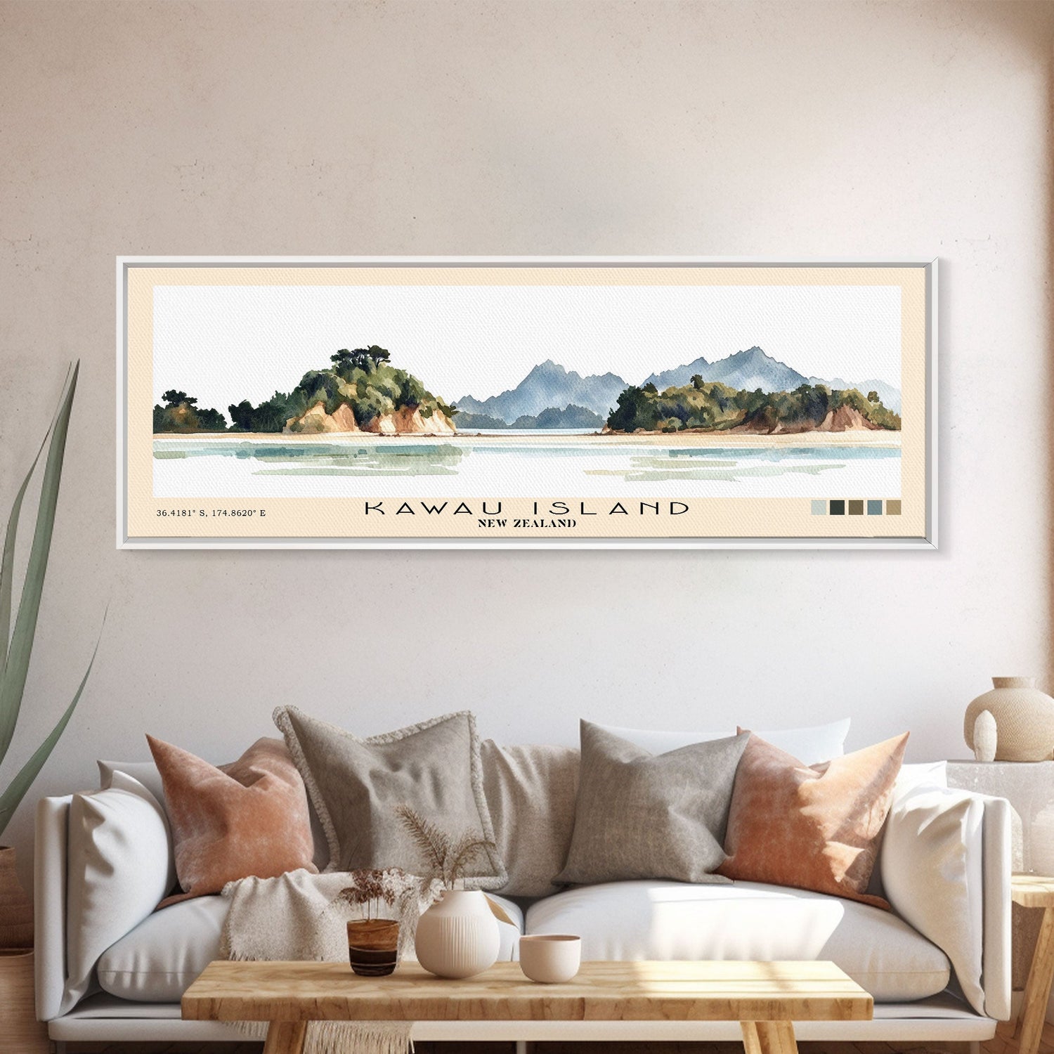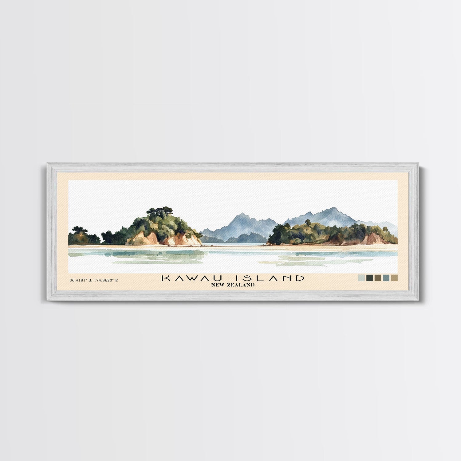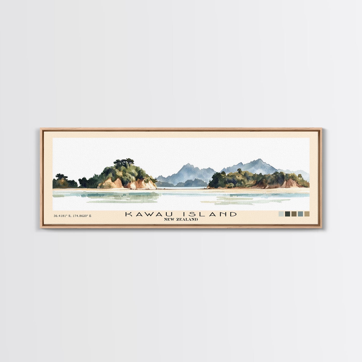 Kawau Island, New Zealand Watercolor Beach Print, Vacation Gift, New Zealand Wall Art, Beach Painting, Beach Decor, Beach Painting - 10x30 Inches / Gallery Wrap Canvas - Ready To Hang is backordered and will ship as soon as it is back in stock.