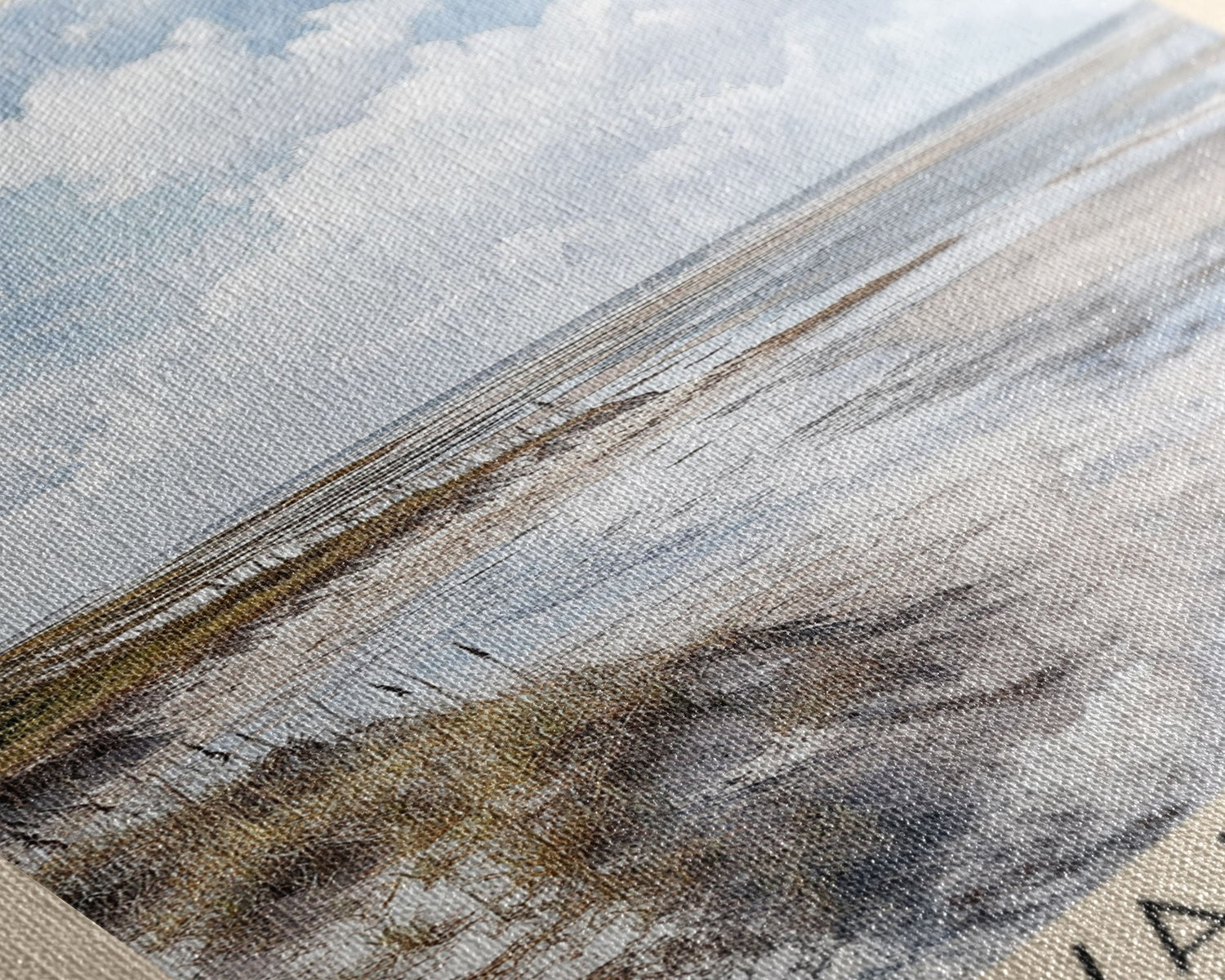 Most of our canvases are made in the USA, with the exception of canvases ordered with the light oak unstained frames, and any large canvases (24x48, 30x60, 16x48 and 20x60) ordered WITH a frame. These are temporarily made in and shipped from Europe, while we try to find a more consistent supplier in the USA.
