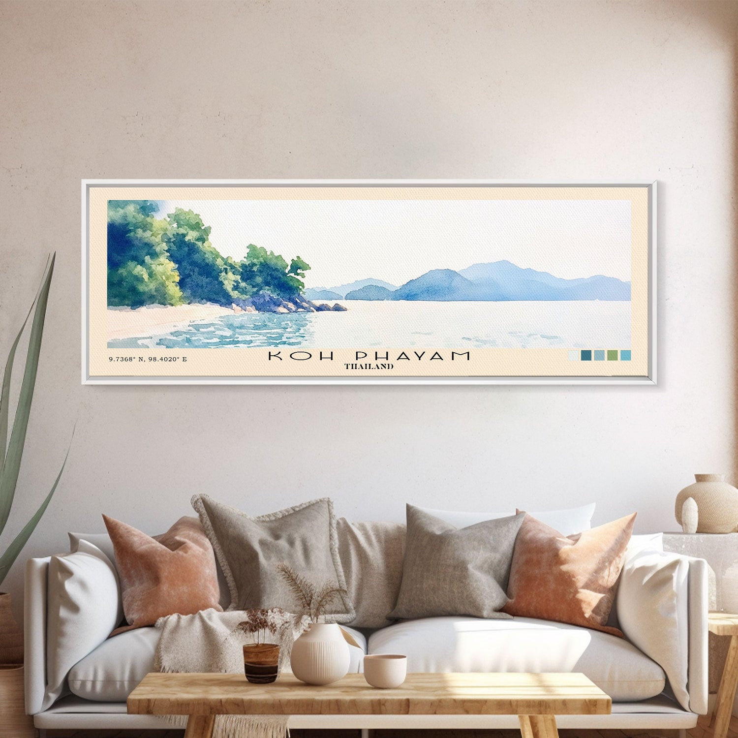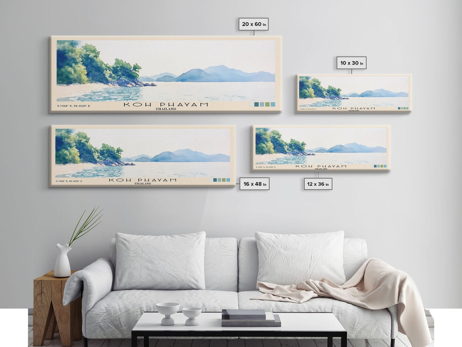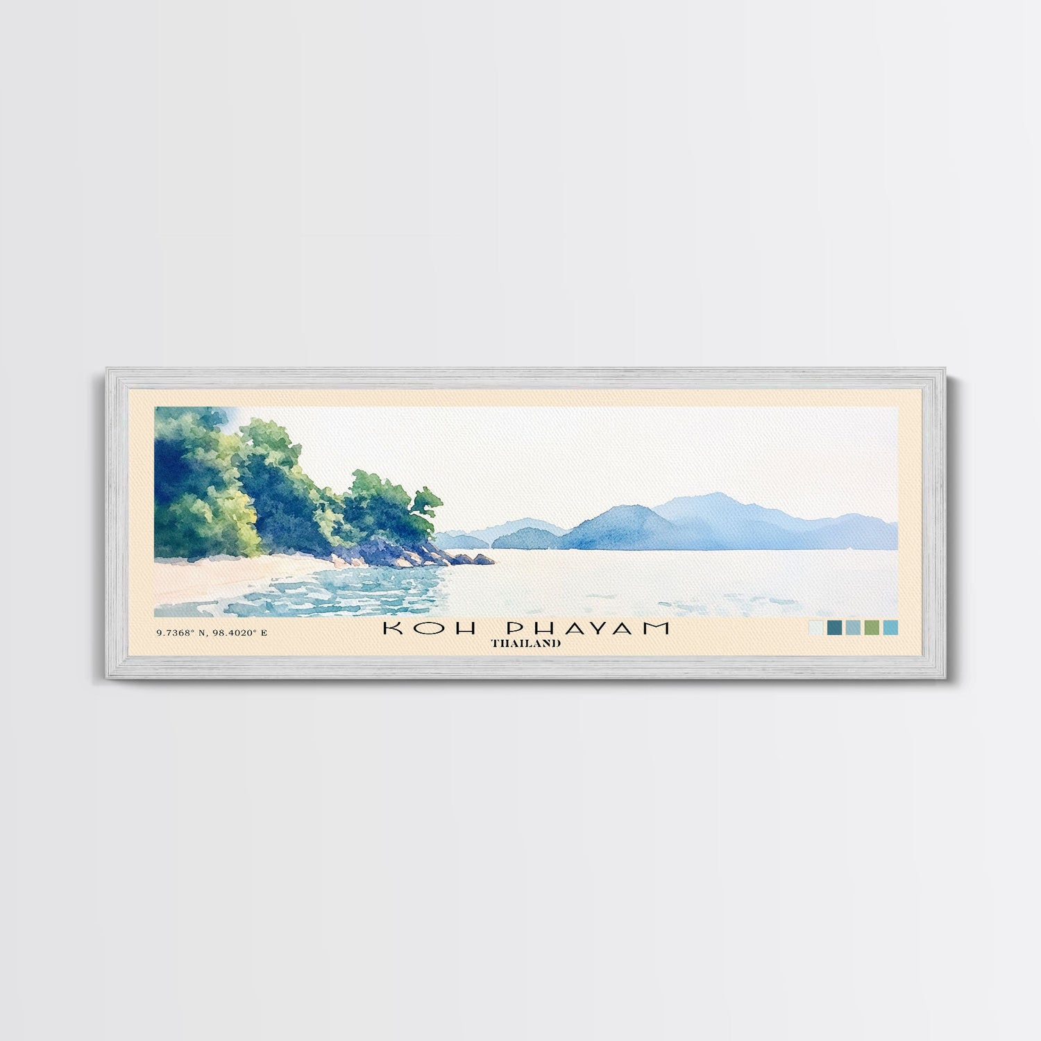 Koh Phayam, Thailand Watercolor Beach Print, Vacation Gift, Thailand Wall Art, Beach Painting, Beach Decor, Beach Painting - 10x30 Inches / Gallery Wrap Canvas - Ready To Hang is backordered and will ship as soon as it is back in stock.