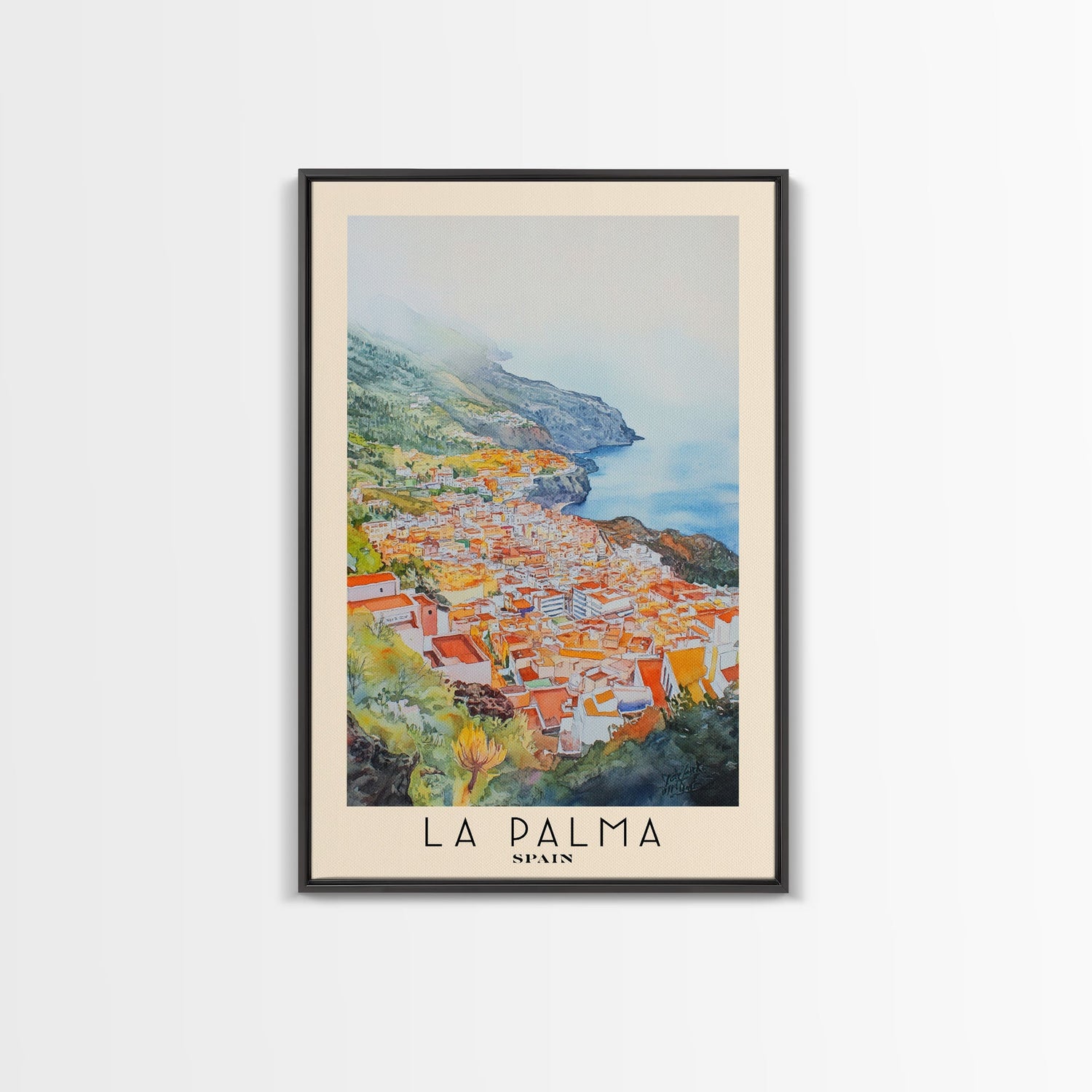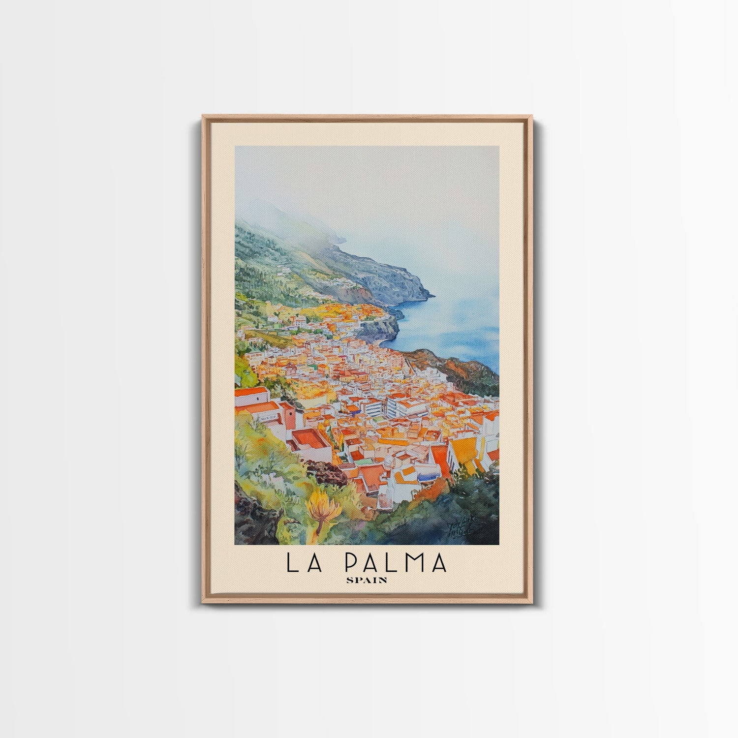 La Palma, Spain Watercolor Print, Vacation Gift, Spain Wall Art, Beach Painting, Beach Decor, Large Wall Art, Wood Frame Art