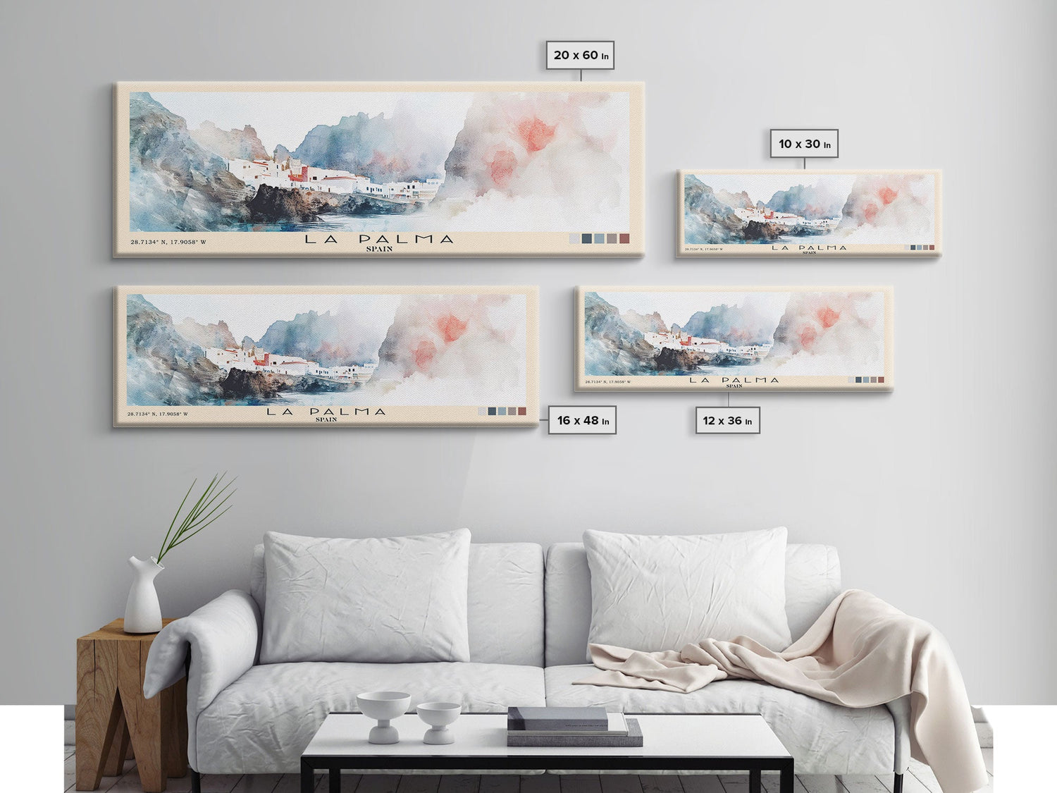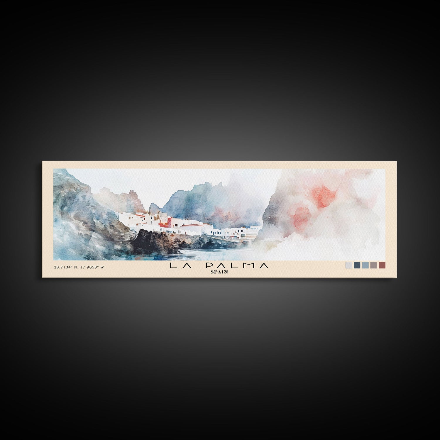 La Palma, Spain Watercolor Print, Vacation Gift, Spain Wall Art, Beach Painting, Beach Decor, Large Wall Art, Wood Frame Art - 10x30 Inches / Gallery Wrap Canvas - Ready To Hang is backordered and will ship as soon as it is back in stock.